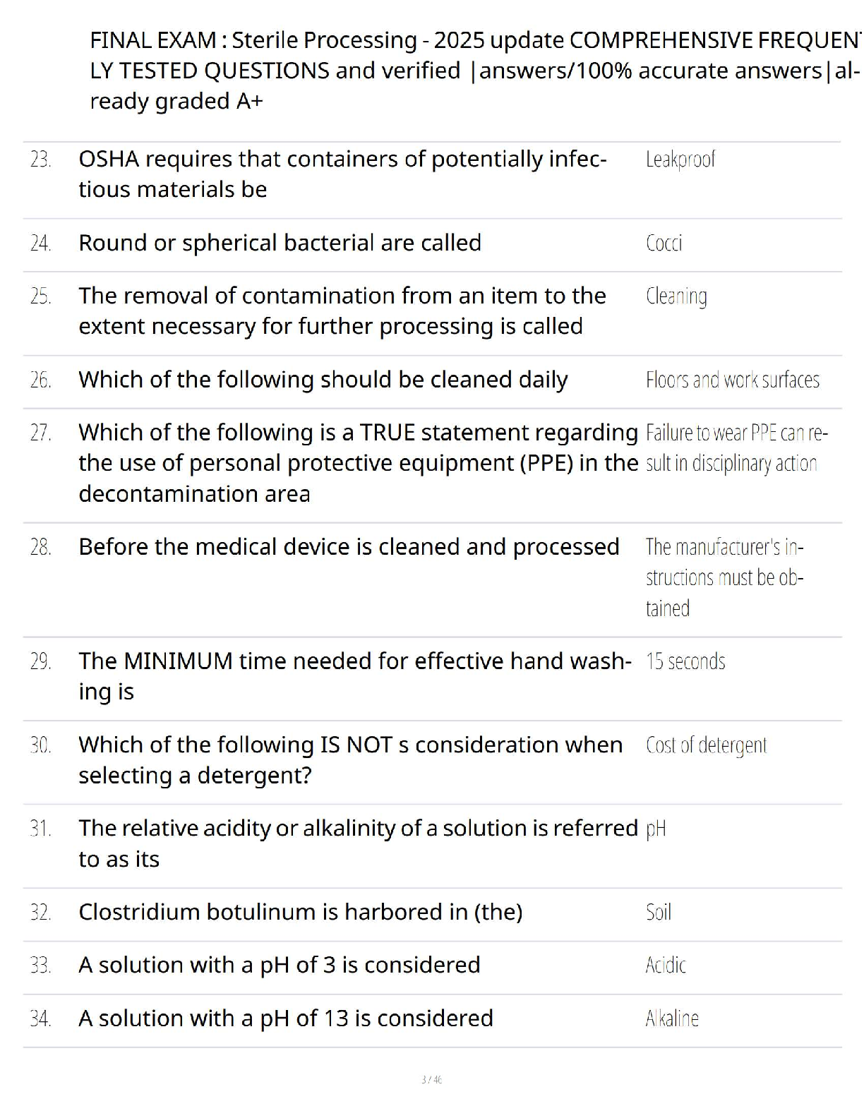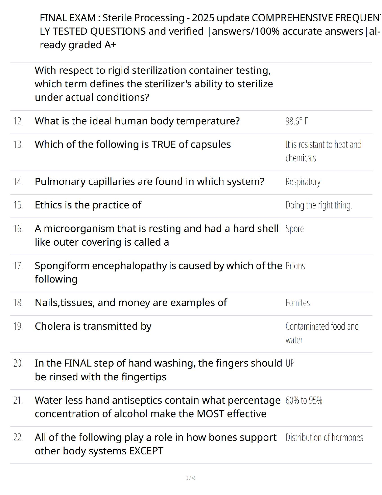 Sterile Processing Certification Exam 2025/2026: Comprehensive Test Bank & Verified Answers for Guaranteed First Attempt Pass
