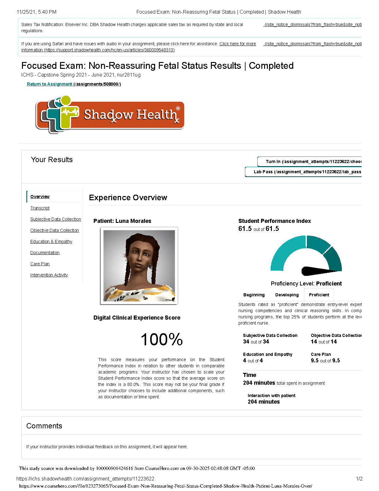 Shadow Health Focused Exam: Non-Reassuring Fetal Status Results (2025-2026 Edition) - Master Your First Attempt