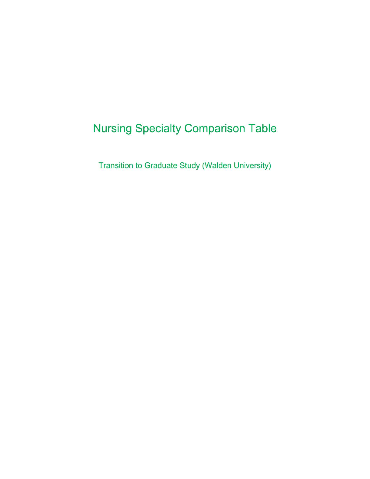 Unlock your potential in Walden University's graduate nursing programs with this comprehensive Nursing Specialty Comparison Table, meticulously crafted for the 2025/2026 academic year. This essential resource provides a clear, concise overview of various nursing specialties, making complex career paths easy to understand and compare. Designed specifically to enhance your study routine, this guide is your vital tool for mastering course material, excelling in exams on your very first attempt, and confidently navigating your transition to advanced nursing practice without the stress of resits. Perfect for aspiring nurse practitioners, educators, or administrators seeking clarity and an edge in their graduate studies.