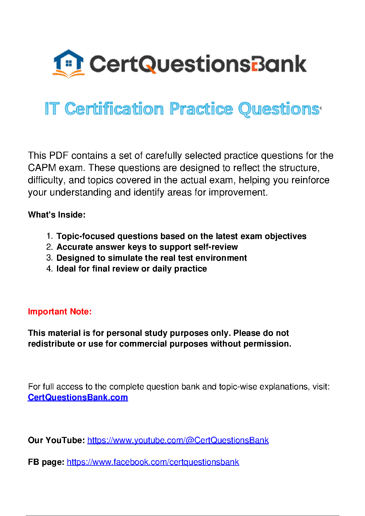 PMI CAPM Exam (Latest Edition) Practice Questions Test Bank | 2025/2026 Exam Preparation for First Attempt Success by CertQuestionsBank