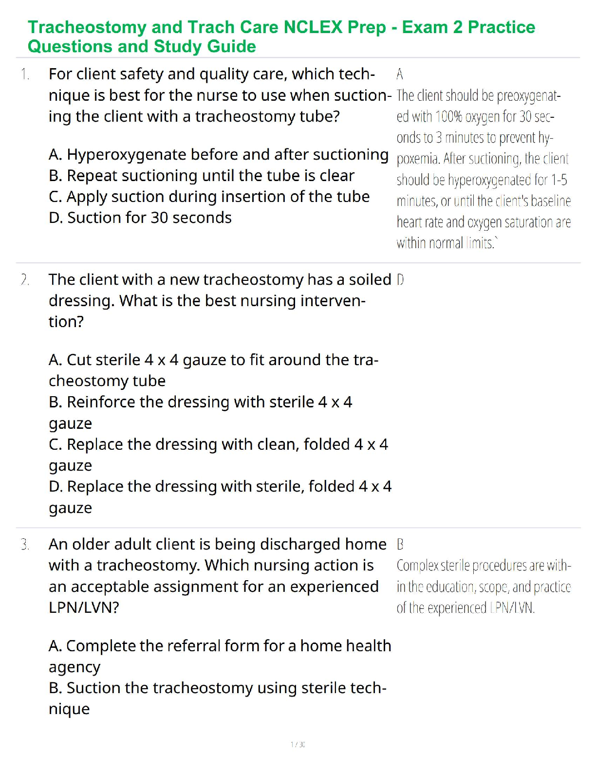 Ace your NCLEX exam with this comprehensive study guide focusing on tracheostomy and trach care. This resource features practice questions and detailed explanations to help you master essential concepts and avoid resits for the 2025/2026 academic year. Perfect for nursing students aiming for first-time success.