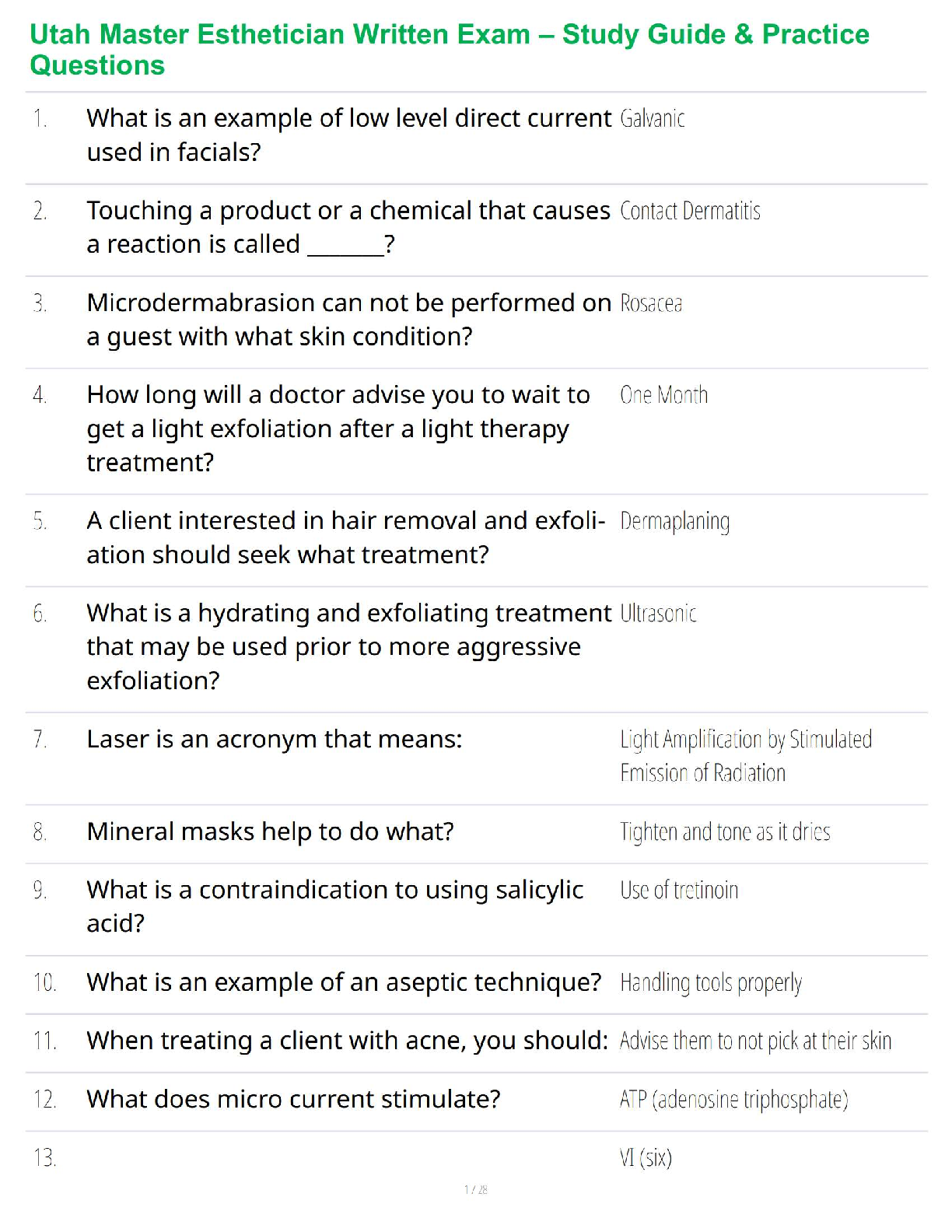 Utah Master Esthetician Written Exam: Comprehensive Test Bank & Study Guide for Success