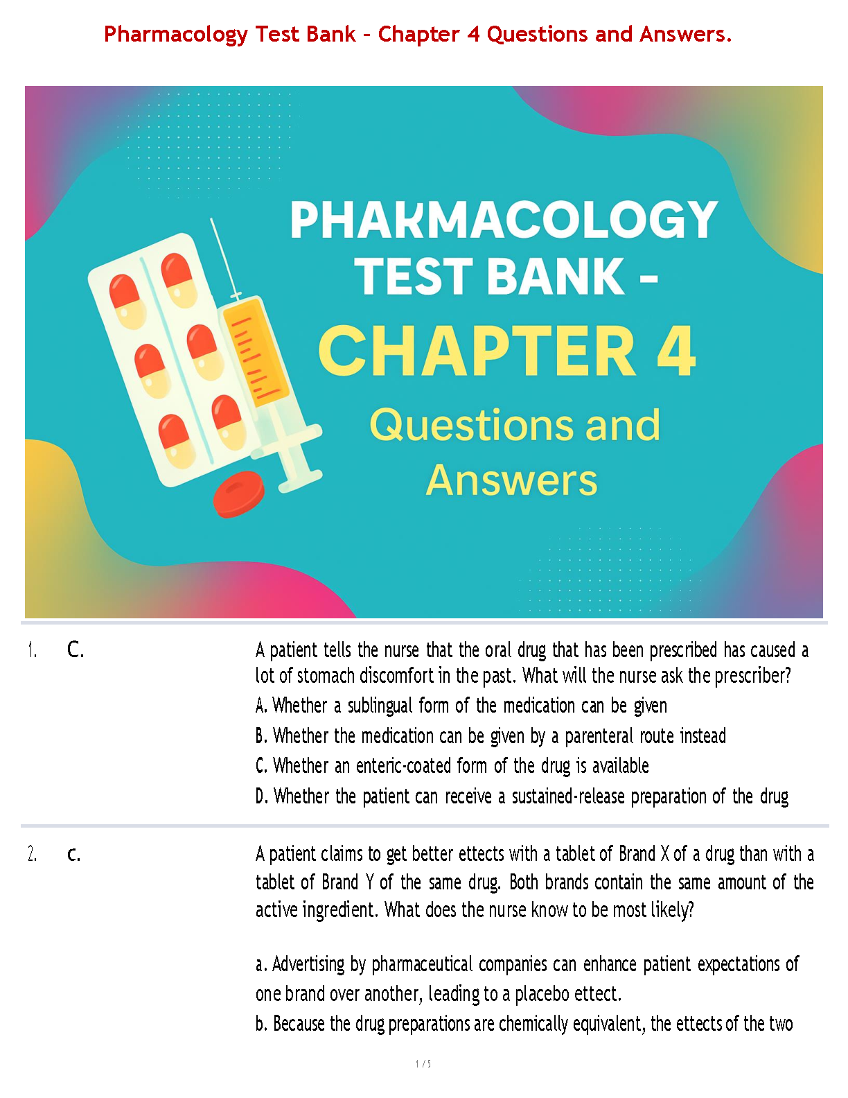 Prepare for pharmacology exams with this essential test bank focusing on Chapter 4 concepts from Lilley's Pharmacology & The Nursing Process, 10th Edition, authored by Linda Lane Lilley, Julie S. Snyder, and Shelly Rainforth Collins. This resource provides a robust collection of questions and answers, meticulously designed to deepen your understanding of key pharmacological principles, enhance critical thinking, and build confidence for passing your nursing exams on the first attempt. Ideal for students seeking comprehensive review and effective exam preparation to avoid resits.