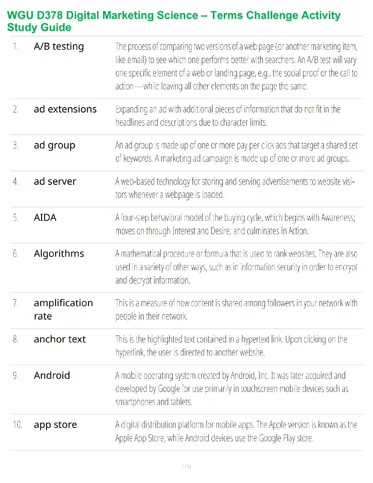 Ace your WGU D378 Digital Marketing Science course with this indispensable 2025/2026 study guide. Specifically tailored to help you master challenging terminology and core concepts, this resource is designed for first-attempt exam success, helping you confidently avoid resits. Gain a solid grasp of crucial digital marketing vocabulary, ensuring you're fully prepared for your assessments.
