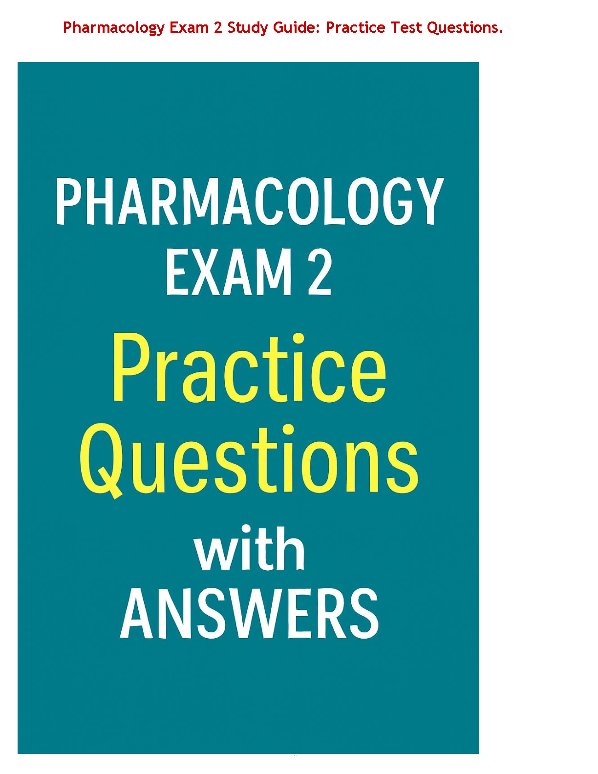 Prepare effectively for your Pharmacology Exam 2 with this ultimate study resource. This test bank offers a comprehensive collection of practice questions complete with detailed answers, designed to reinforce your understanding of critical pharmacological concepts. Perfect for students in the 2025/2026 academic year aiming to pass their exams on the first attempt and avoid costly resits. Elevate your exam preparation and ensure mastery.
