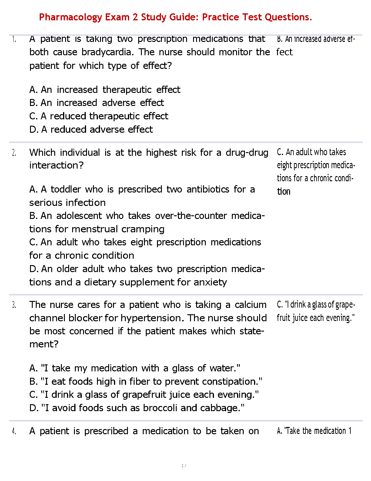 Pharmacology Exam 2 Test Bank: Practice Questions with Comprehensive Answers