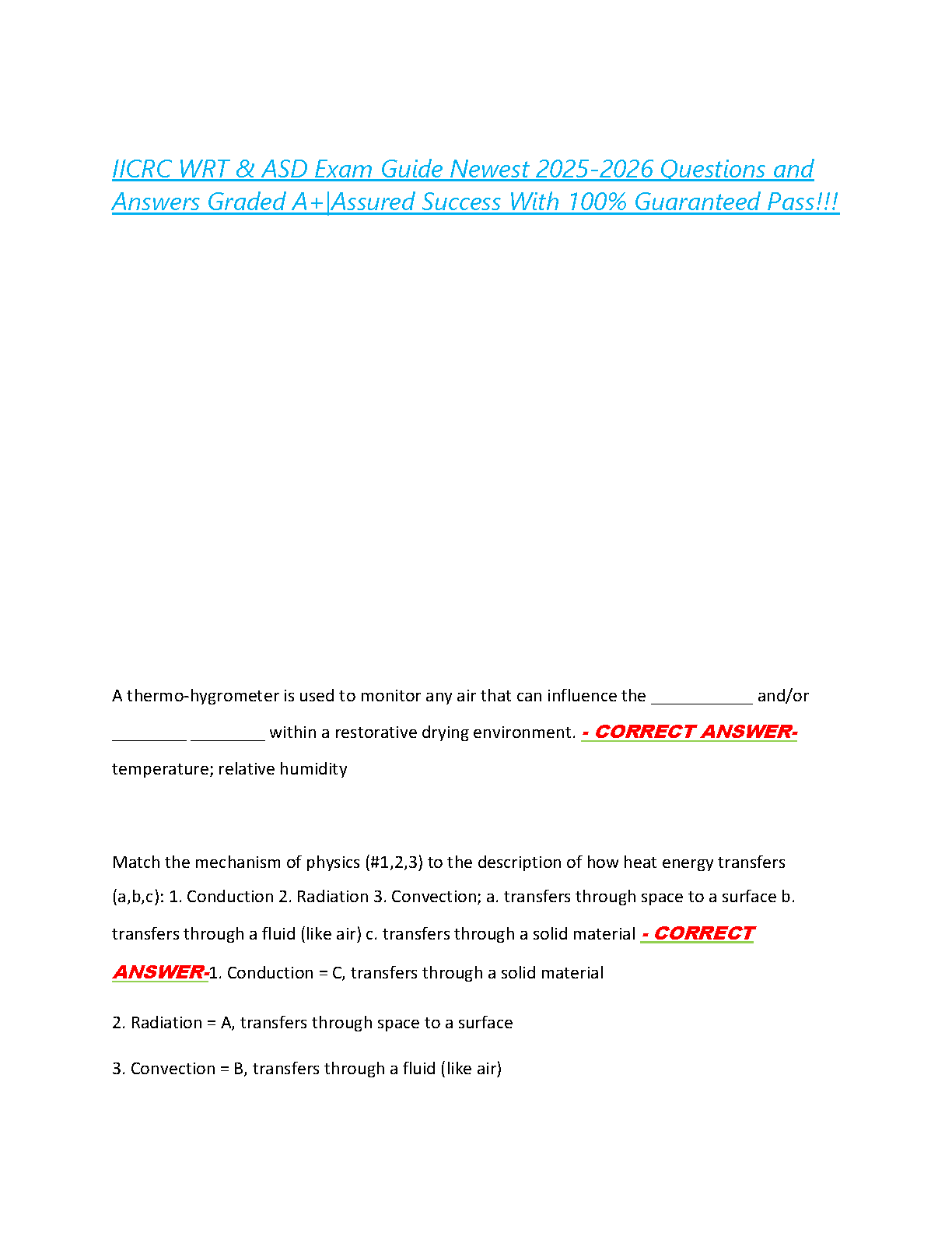 Ace your IICRC Water Restoration Technician (WRT) and Applied Structural Drying (ASD) exams on the first try! This comprehensive study guide for the 2025-2026 academic year features practice questions and graded answers designed to ensure 100% guaranteed success and help you avoid resits. Master key concepts like thermo-hygrometers and heat transfer mechanisms.