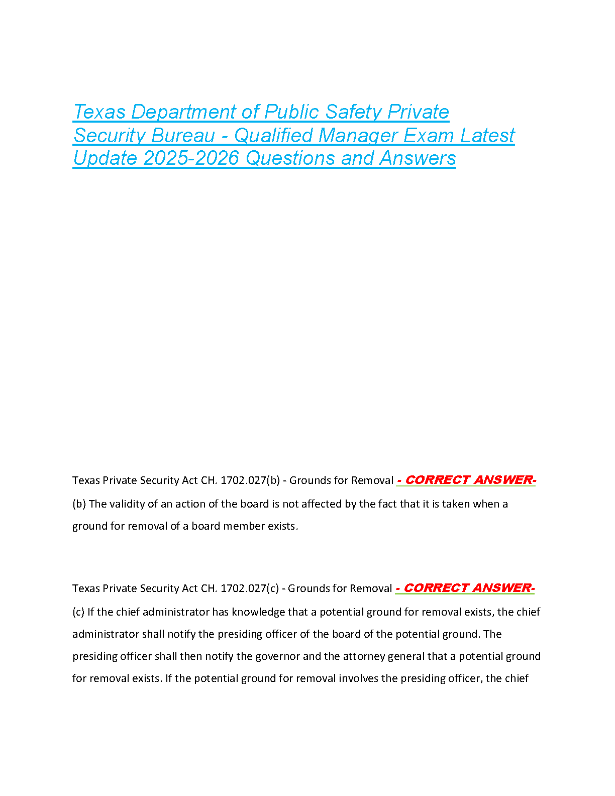 Ace your Texas Private Security Bureau Qualified Manager Exam with this comprehensive 2025-2026 update! This resource provides essential questions and answers, expertly curated to ensure you pass on your first attempt and avoid resits. Master the latest material and secure your qualification.