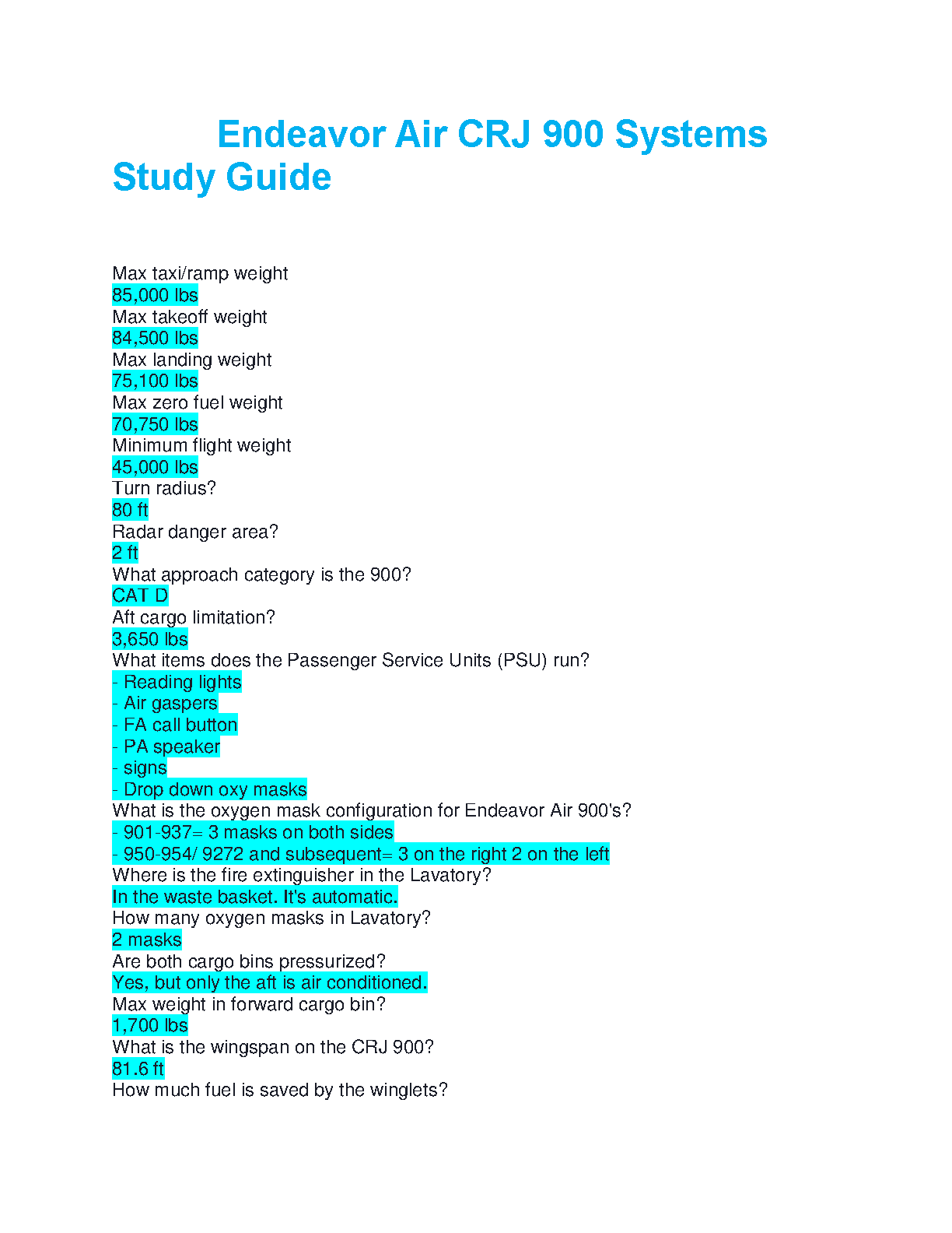 This meticulously curated study guide offers a concise, question-and-answer format specifically designed for Endeavor Air pilots and aviation students preparing for CRJ 900 systems examinations. Covering essential operational data such as maximum taxi/ramp weight, takeoff/landing limits, minimum flight weight, cargo limitations, and detailed system knowledge including Passenger Service Unit (PSU) components, oxygen mask configurations, fire extinguisher locations, and wingspan, this resource is optimized for rapid review and effective memorization. Ideal for the 2025/2026 academic year, it's your go-to tool for confidently acing your certifications on the very first attempt and avoiding costly resits.