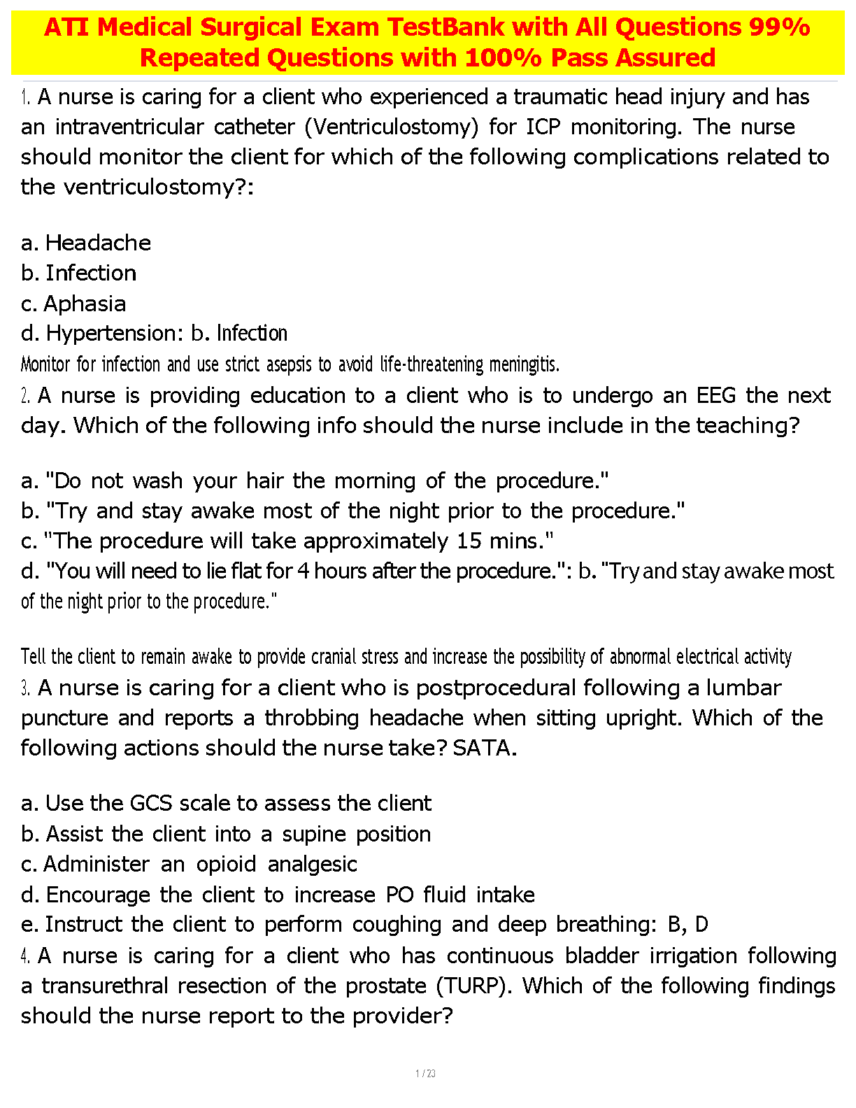 ATI Medical Surgical Exam TestBank: Repeated Questions with 100% Pass Assured