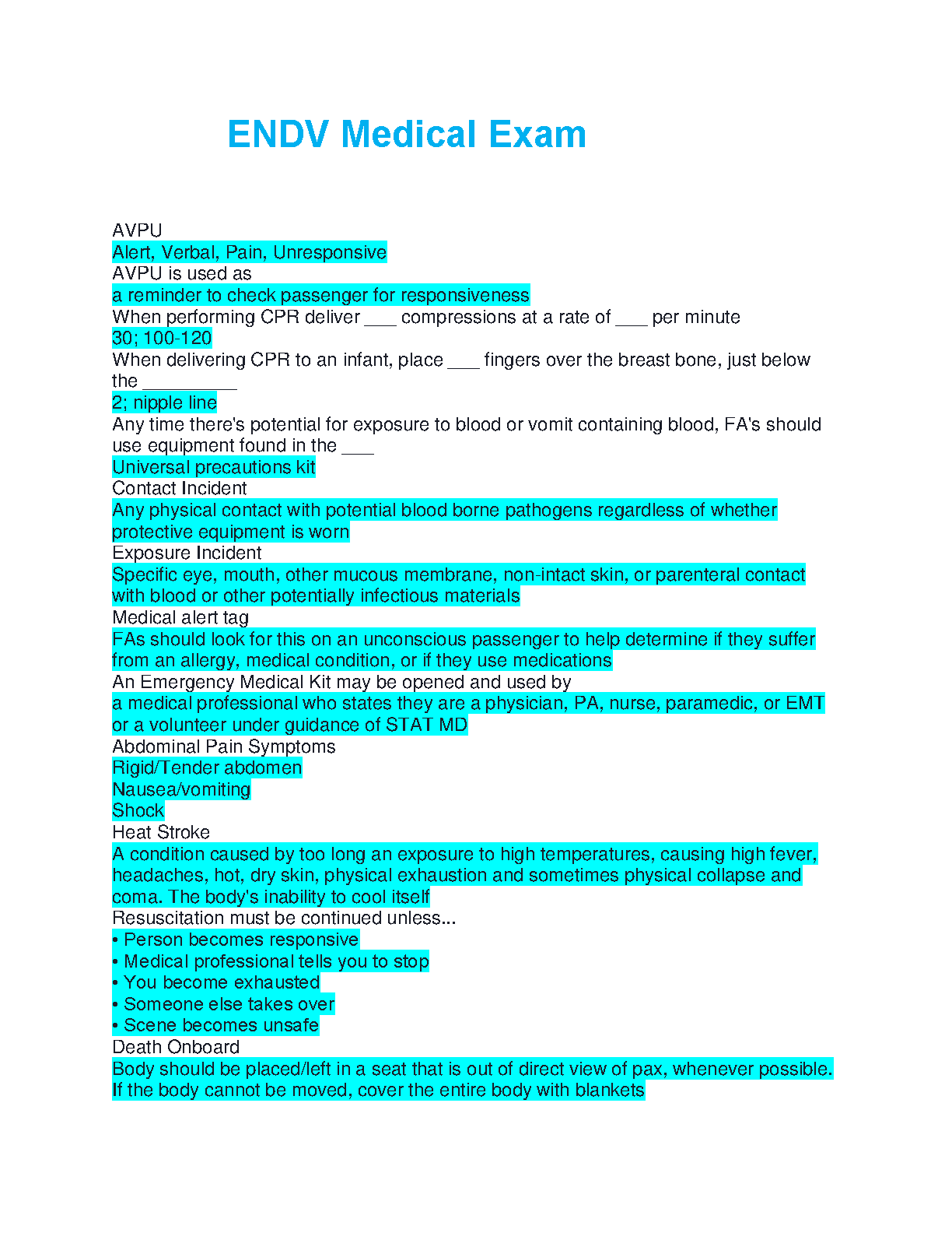 Master the ENDV Medical Exam with this essential review resource. Designed for the 2025/2026 academic year, this guide covers critical topics like AVPU assessment, CPR guidelines, exposure incident protocols, heat stroke management, and onboard death procedures. Equip yourself with the knowledge needed to excel and avoid resits.