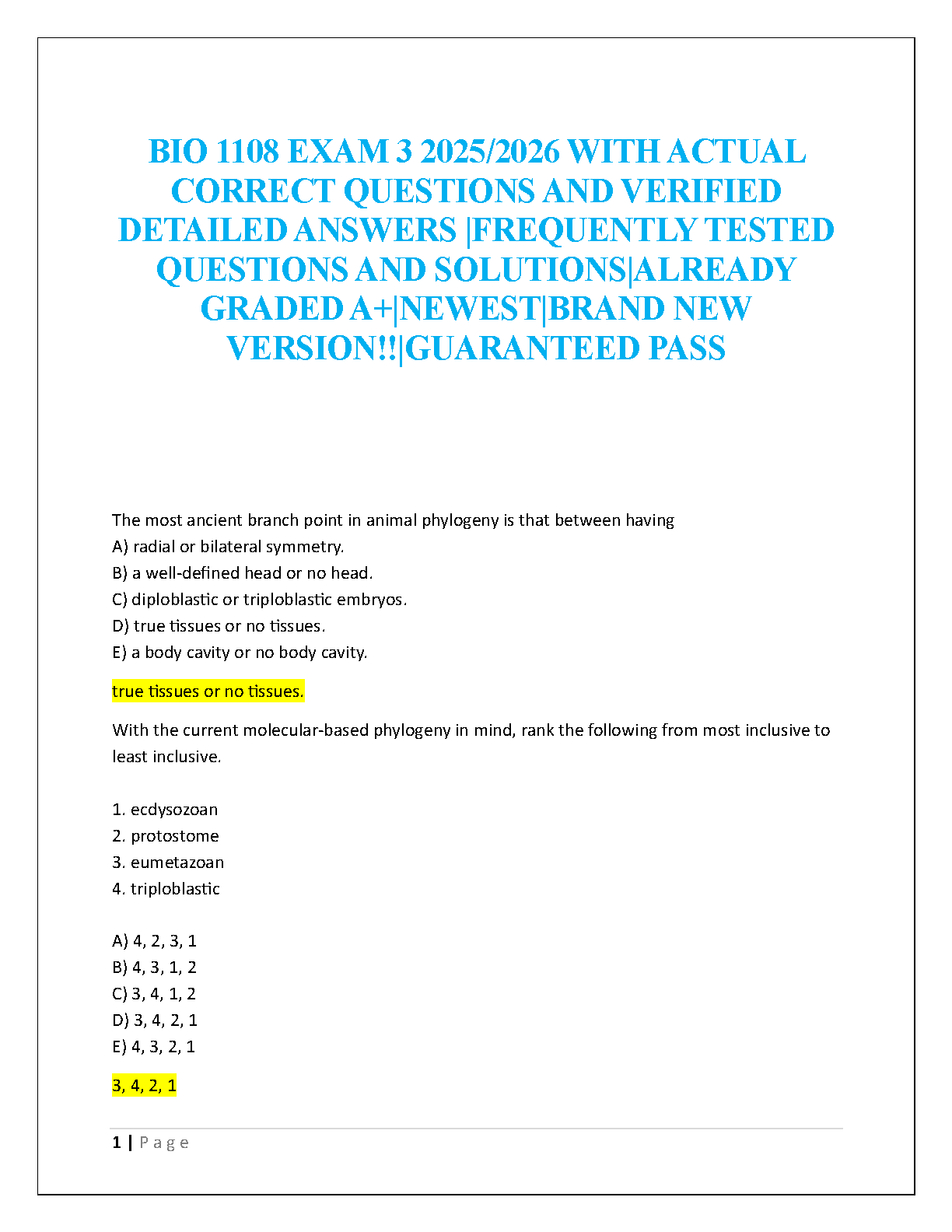 BIO 1108 Exam 3: 2025/2026 Edition - Actual Questions, Verified Answers, and Solutions by [Authors' Names] | Guaranteed First Attempt Pass