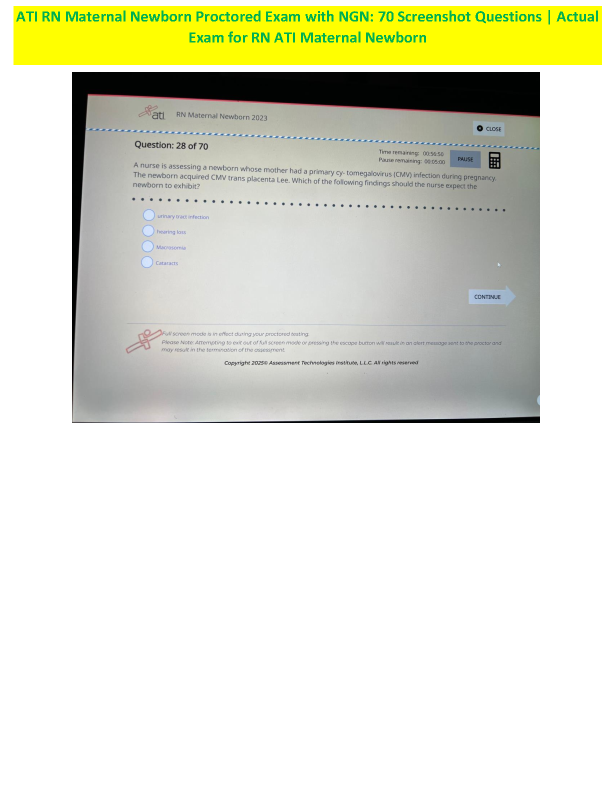 ATI RN Maternal Newborn Proctored Exam 2023 NGN Test Bank | 70 Real Exam Questions & Answers by Assessment Technologies Institute