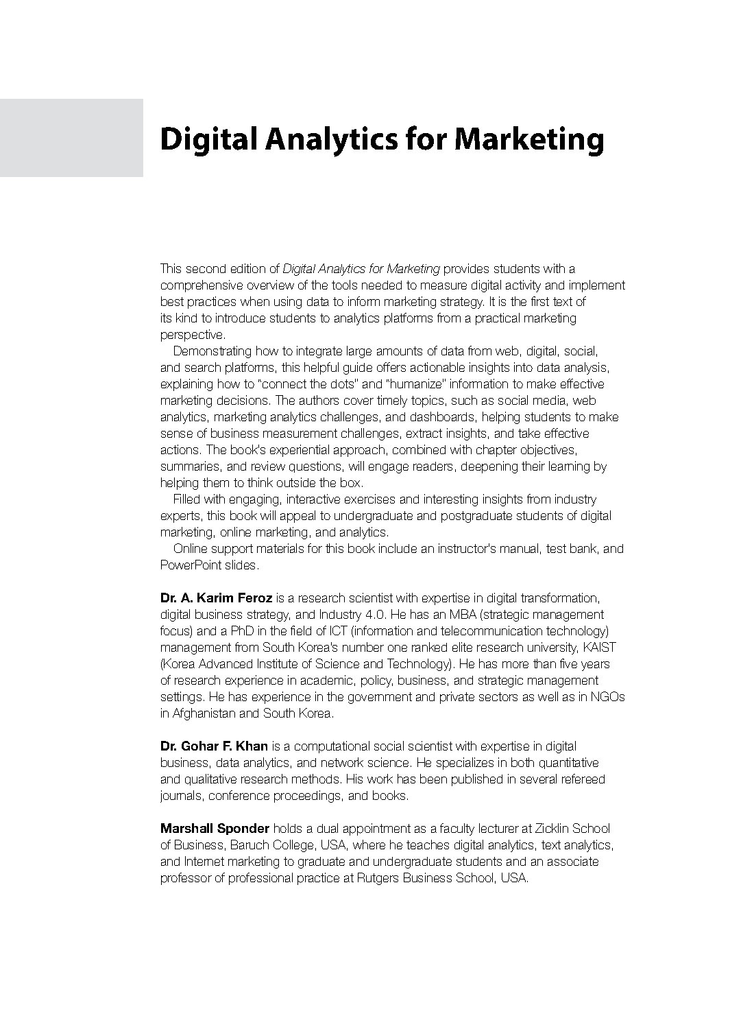 Unlock the secrets to modern marketing with the latest 2025/2026 edition of 'Digital Analytics for Marketing'. Authored by experts A. Karim Feroz, Gohar F. Khan, and Marshall Sponder, this comprehensive guide is your key to acing your exams on the first try. Dive deep into essential topics such as data acquisition, web and social media analytics, SEO, and measurement to transform raw data into powerful marketing strategies. This resource is designed to provide you with the critical insights and practical skills needed to excel in your course and avoid resits. Get ahead of the curve and master the concepts that will define your success in the field.