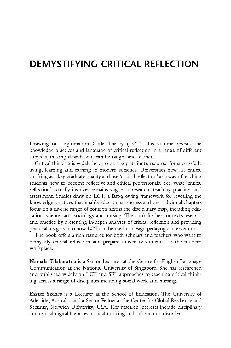 Demystifying Critical Reflection: Improving Pedagogy and Practice with Legitimation Code Theory, 1st Edition by Namala Tilakaratna & Eszter Szenes | 2025/2026 Ultimate Guide to Pass Exams First Try
