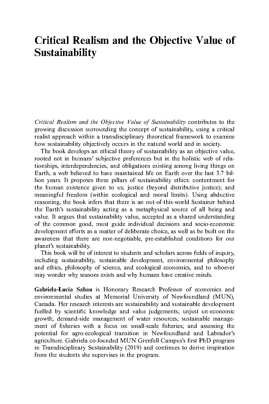 Critical Realism and the Objective Value of Sustainability by Gabriela-Lucia Sabau, 1st Edition | Latest 2025/2026 Exam Prep Guide to Avoid Resits