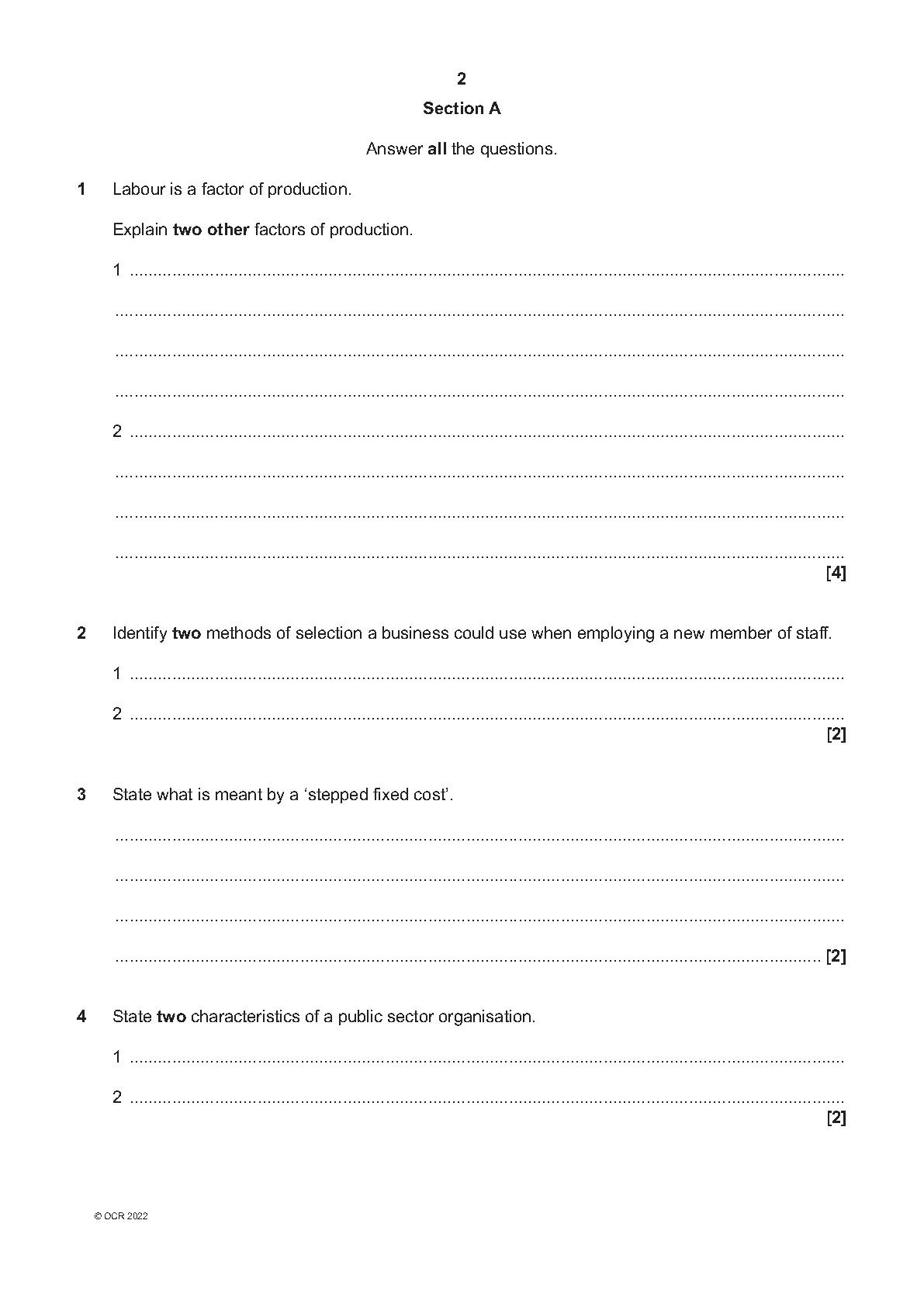OCR A LEVEL BUSINESS PAPER 2 JUNE 2022 QUESTION PAPER (H431/02: The UK business environment)