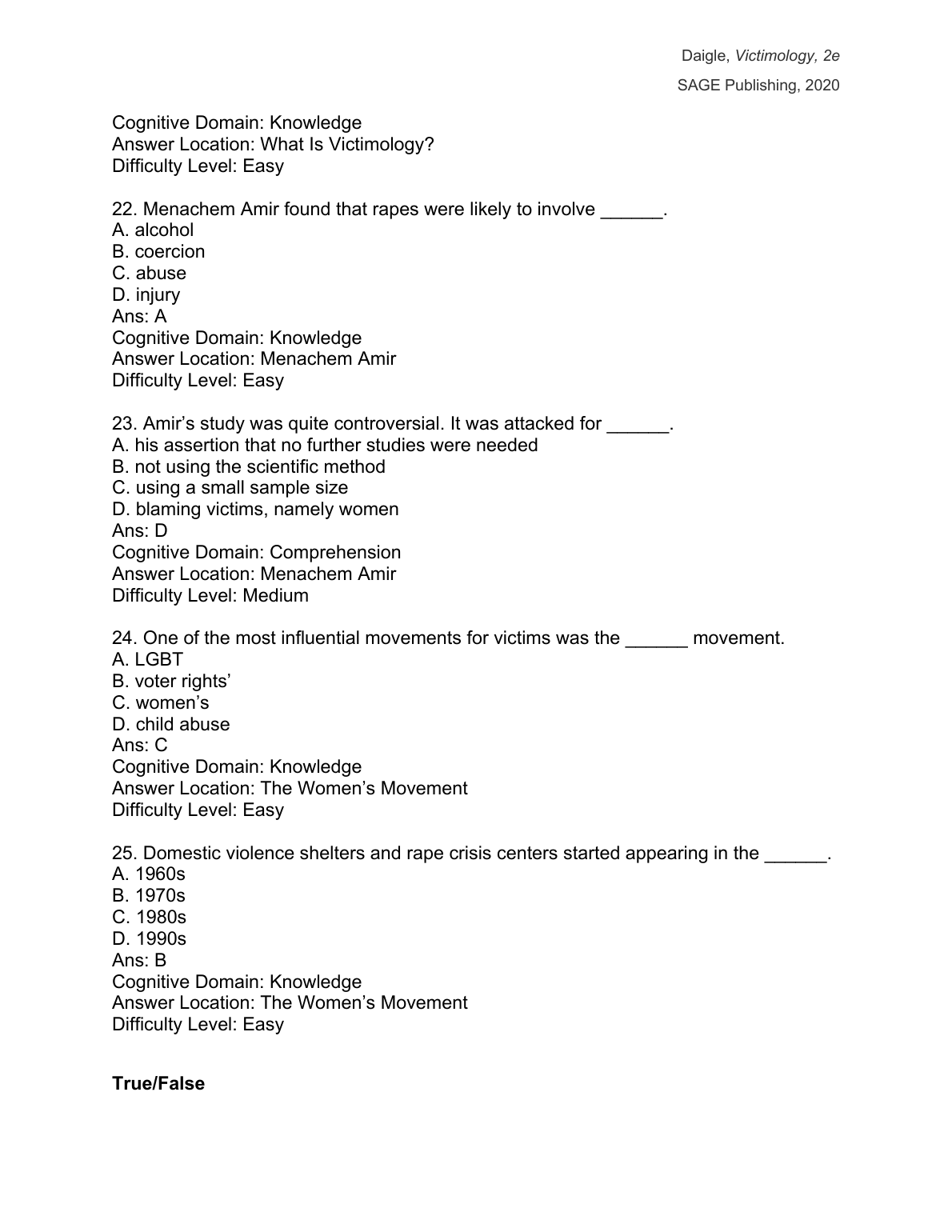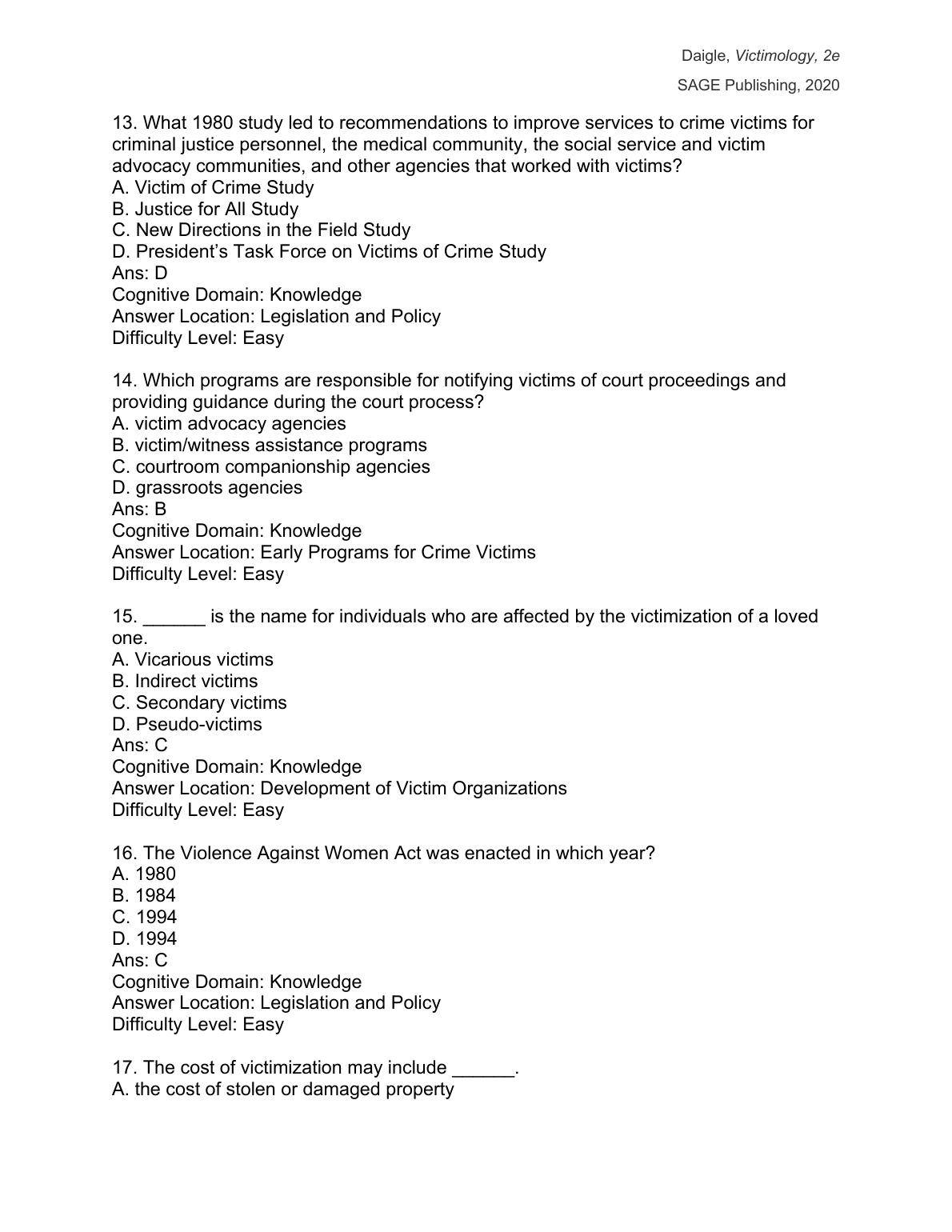 TEST BANK: Daigle, Victimology, 2ND EDITION SAGE Publishing
