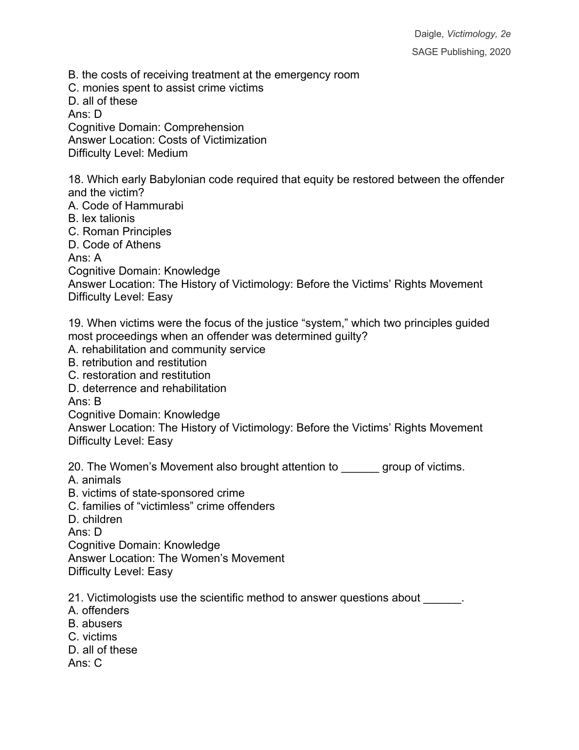 TEST BANK: Daigle, Victimology, 2ND EDITION SAGE Publishing. DOWNLOAD on www.hackedexams.com INSTANTLY.