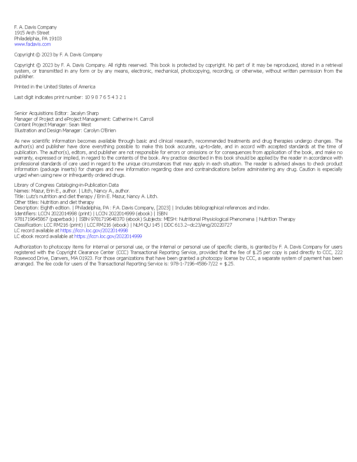 Test Bank for Lutz's Nutrition and Diet Therapy, 8th Edition by Erin E. Mazur & Nancy A. Litch
