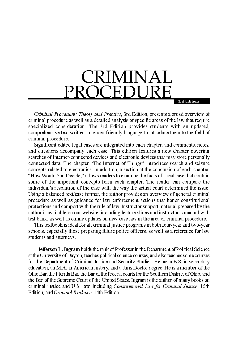 Test Bank for Criminal Procedure: Theory and Practice, 3rd Edition by Jefferson L. Ingram