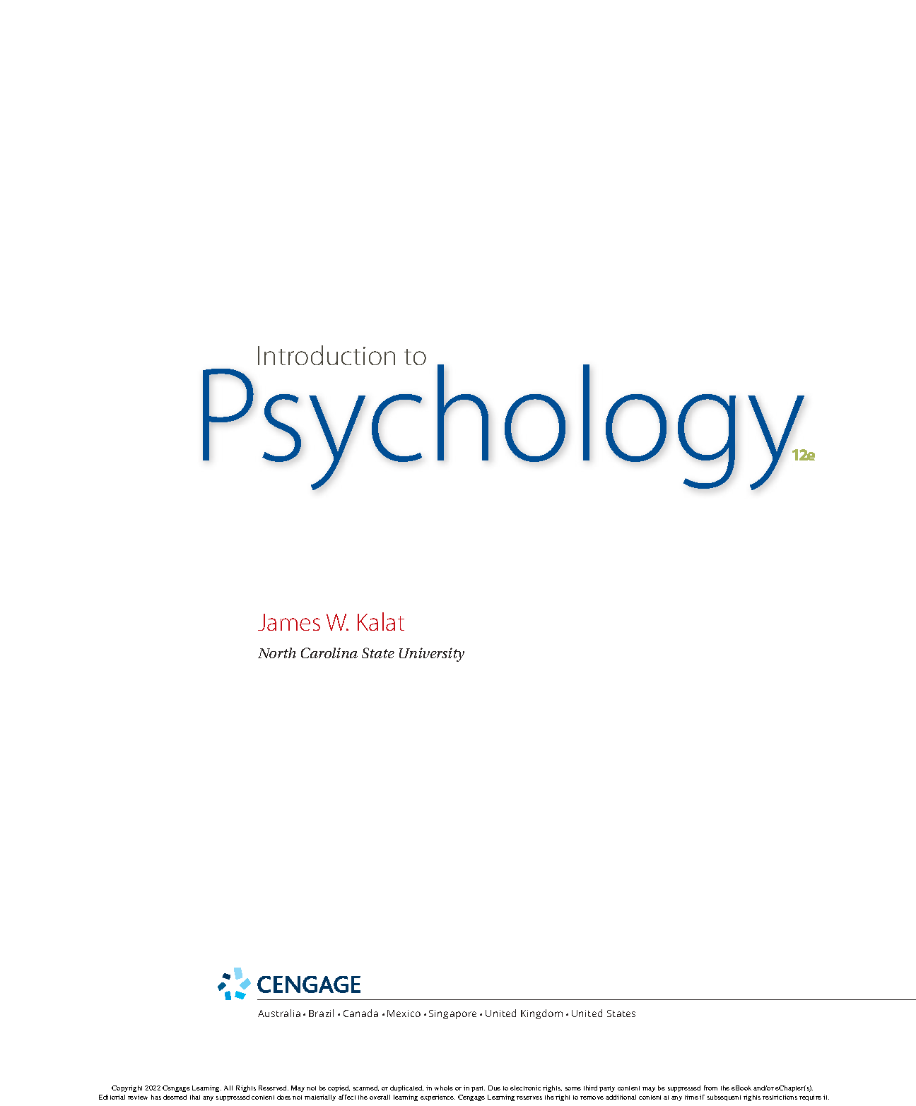 Test Bank for Introduction to Psychology, 12th Edition by James W. Kalat