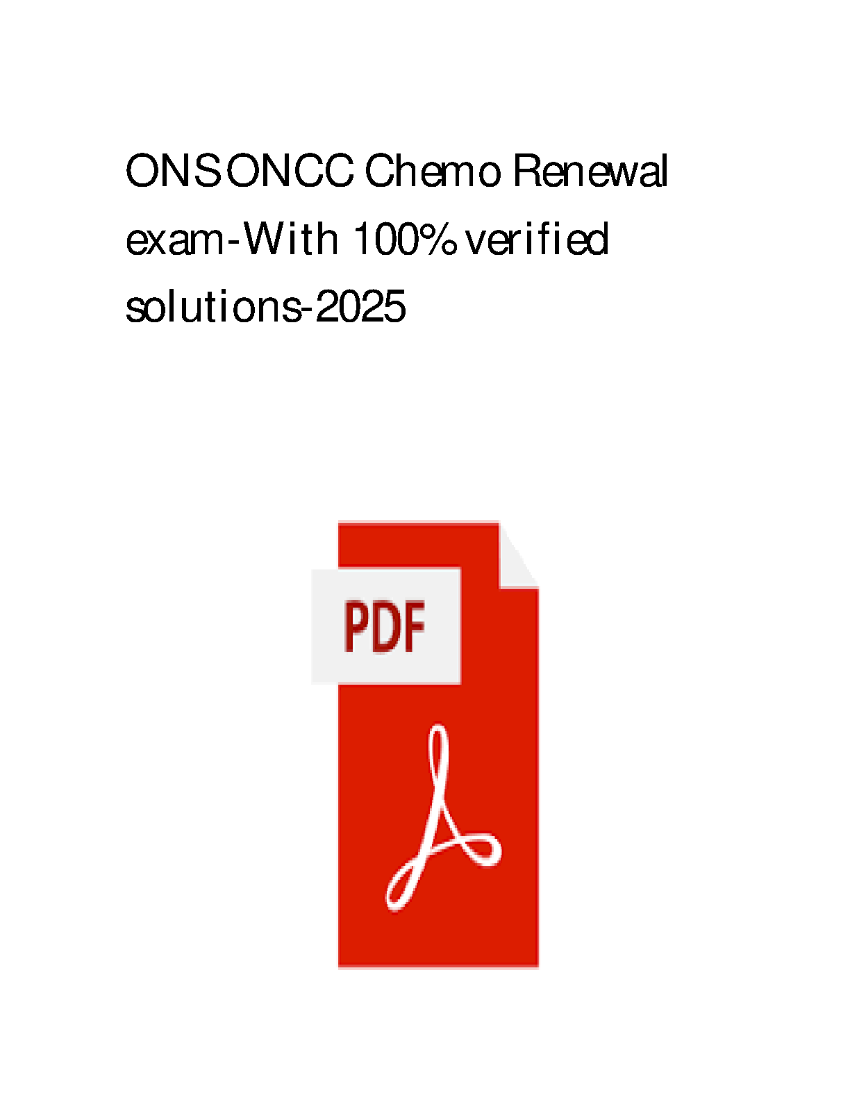 ONS/ONCC Chemotherapy Immunotherapy Certificate Renewal Exam 2025 Test Bank | 100% Verified Questions and Answers