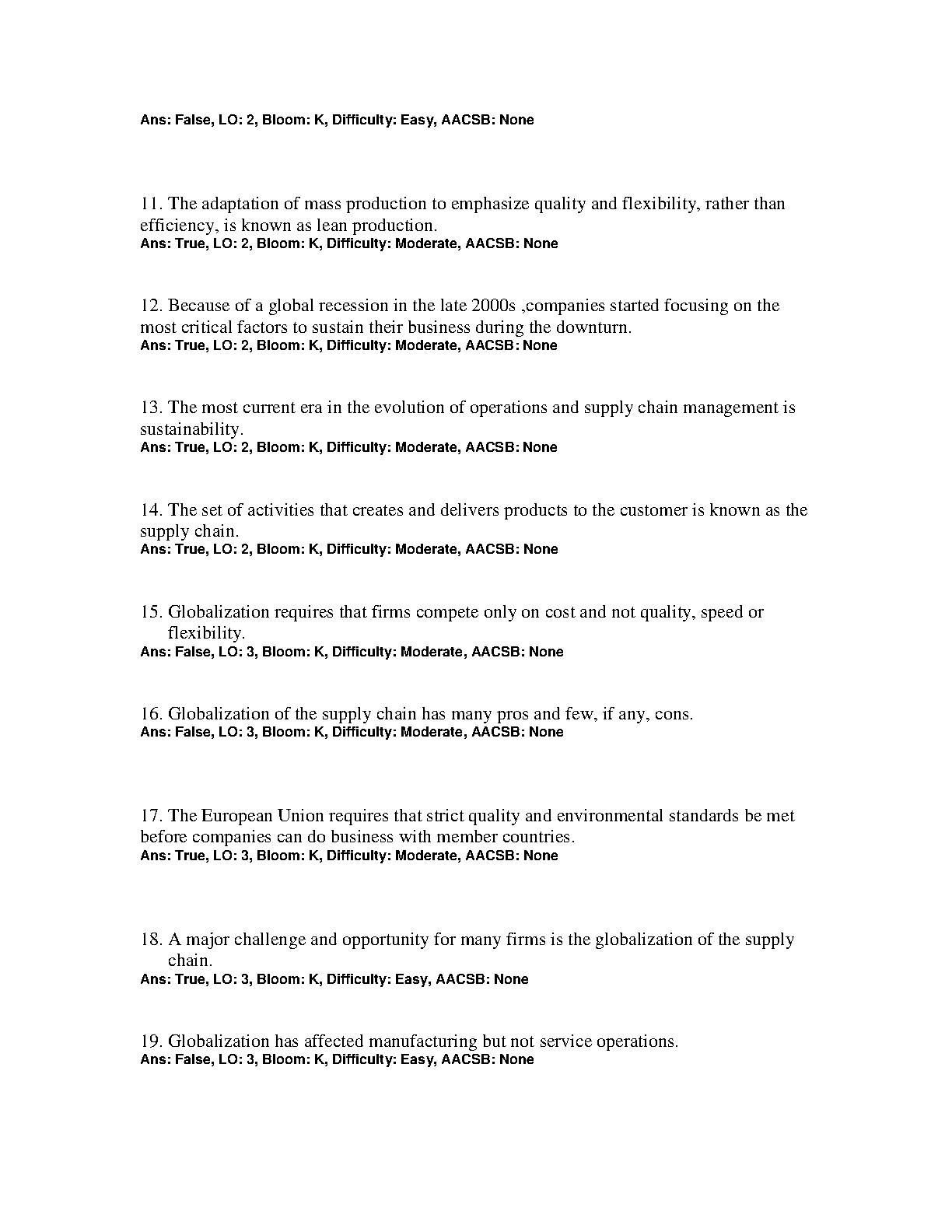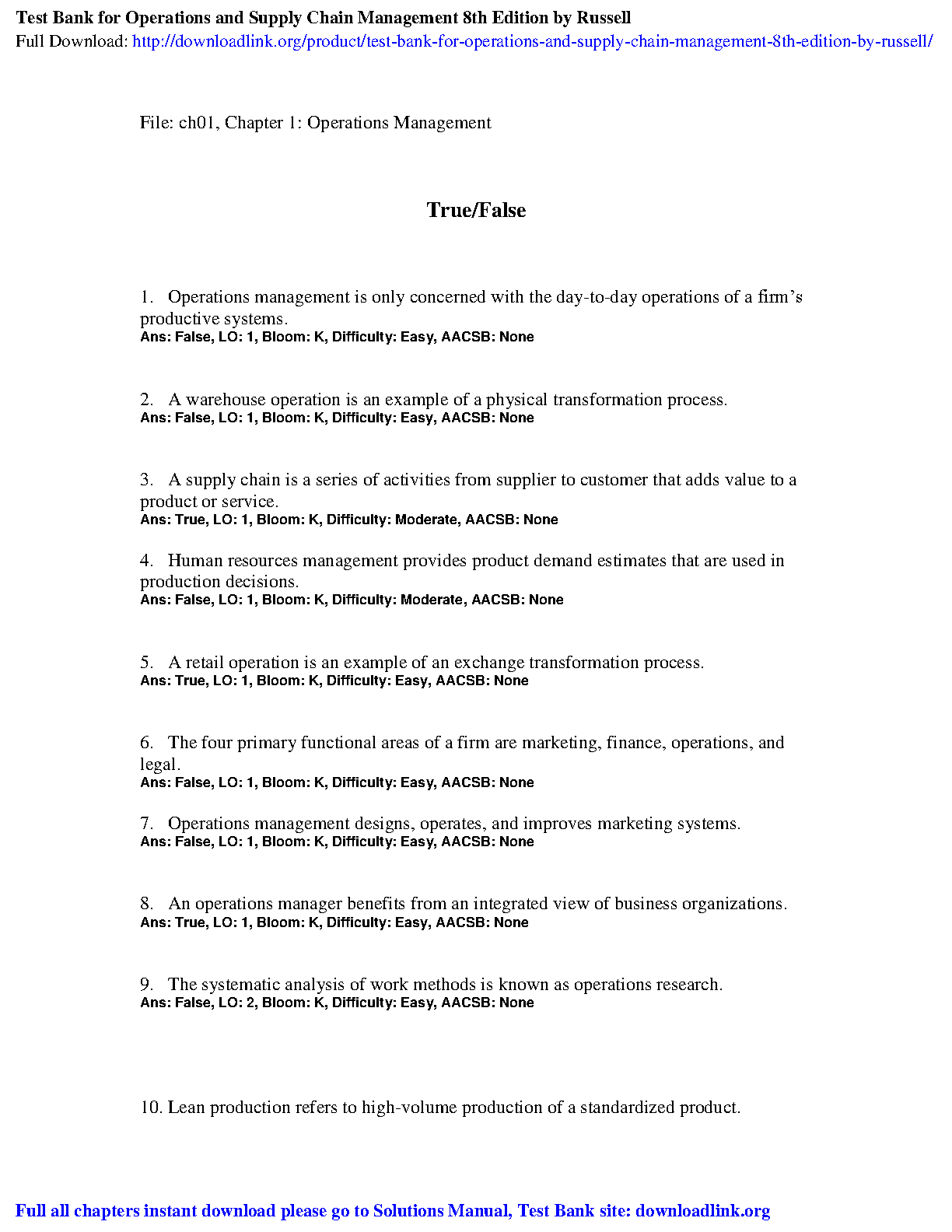 Test Bank for Operations and Supply Chain Management, 8th Edition by Roberta S. Russell & Bernard W. Taylor III