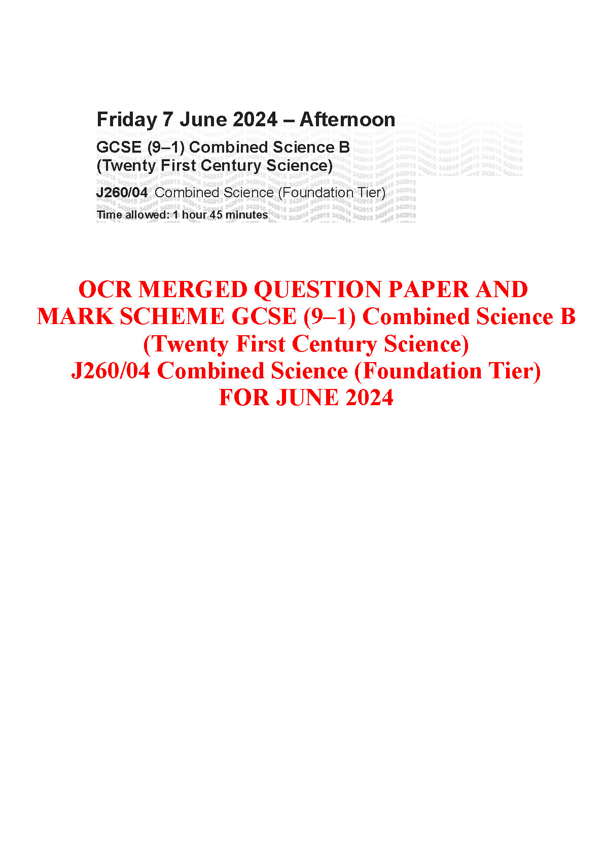 OCR GCSE Combined Science B (J260/04) Foundation Tier - June 2024 Question Paper & Mark Scheme | Your Key to Passing in 2025/2026