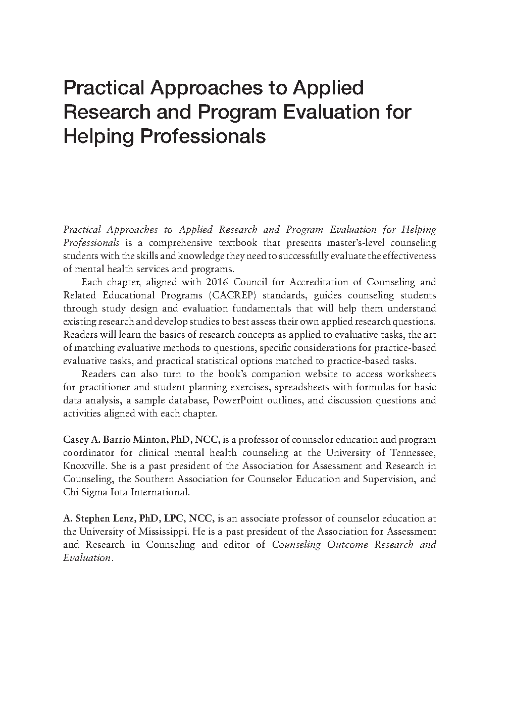 Test Bank for Practical Approaches to Applied Research and Program Evaluation for Helping Professionals, 2nd Edition by Casey A. Barrio Minton, A. Stephen Lenz