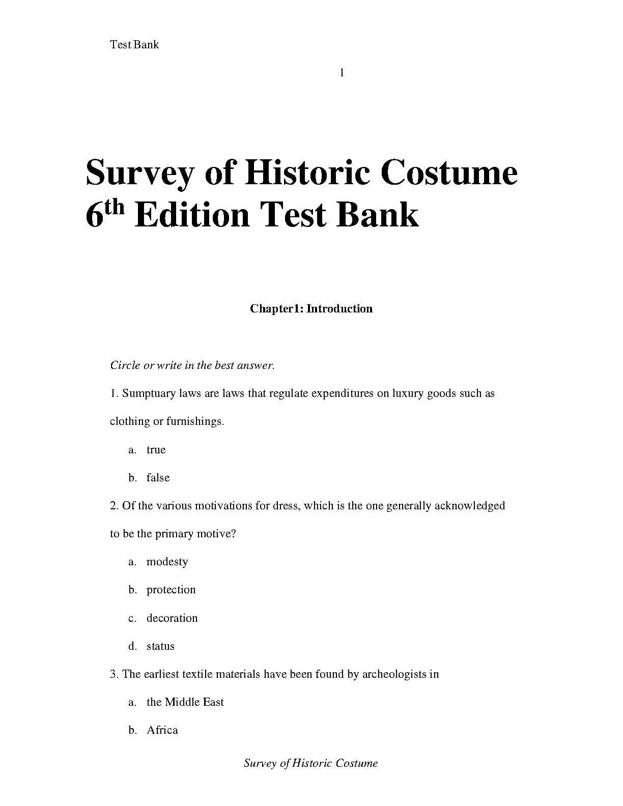 TEST BANK FOR Survey of Historic Costume: Bundle Book 6th Edition by Phyllis G. Tortora (Author), Sara B. Marcketti (Author)