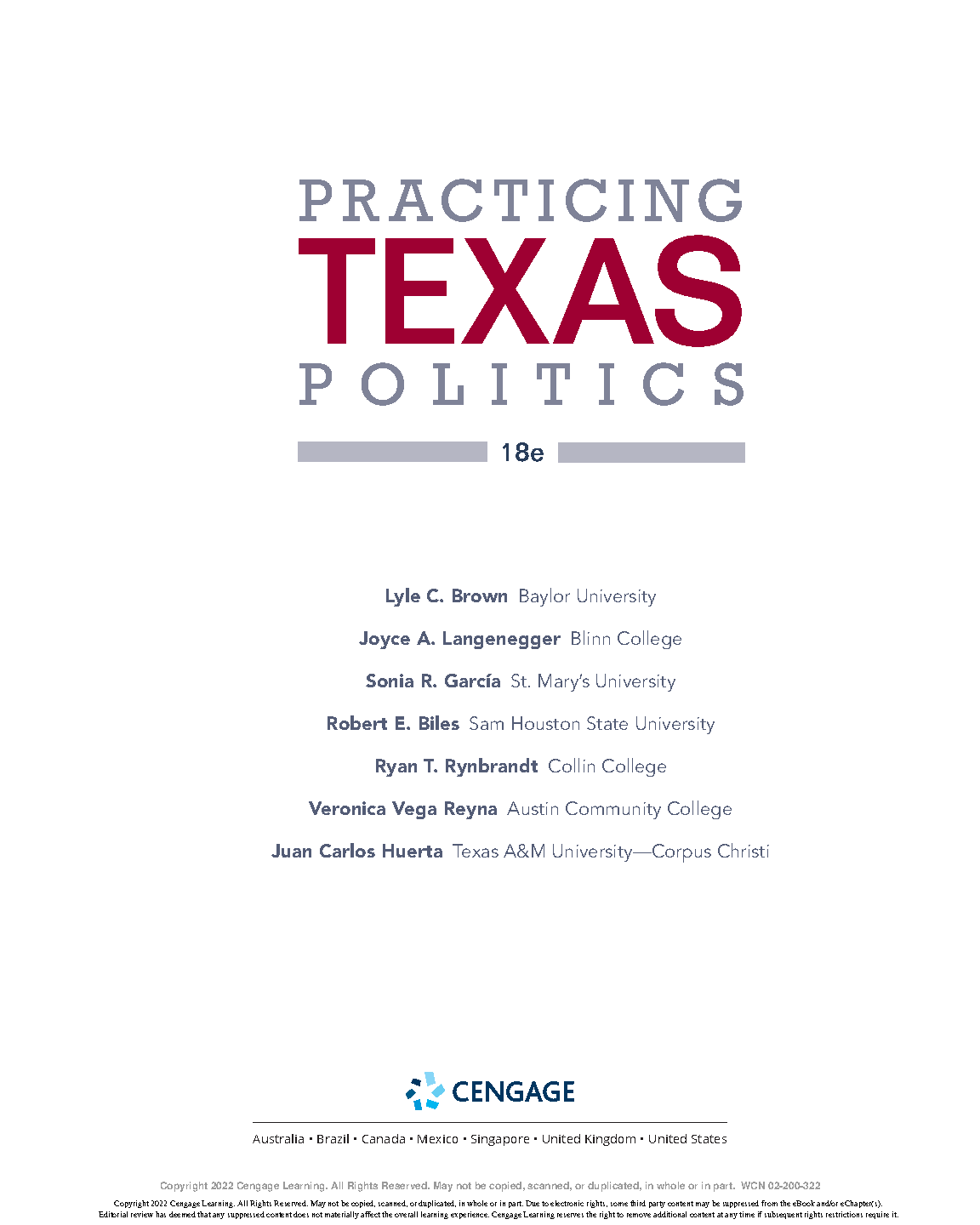 Practicing Texas Politics, 18th Edition by Brown, Langenegger, García, Biles, Rynbrandt, Reyna, Huerta - Official 2025/2026 Exam Success Guide