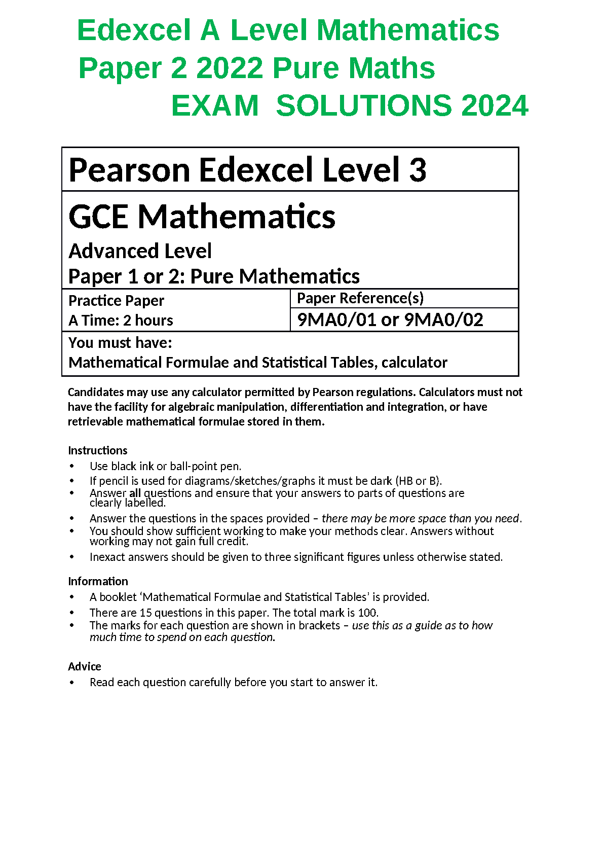 Edexcel A Level Maths Paper 2 (9MA0/02) Pure Mathematics 2022 Exam Solutions | 2025/2026 First-Attempt Pass Guide
