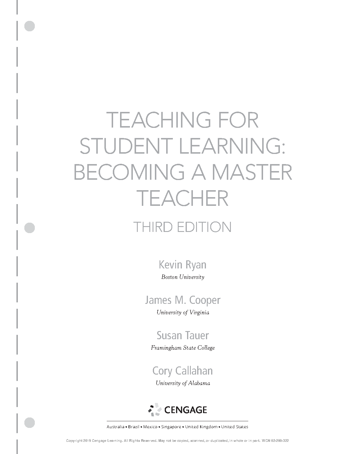 Test Bank for Teaching for Student Learning: Becoming a Master Teacher, 3rd Edition by Kevin Ryan, James M. Cooper, Susan M. Tauer, and Karen Callahan
