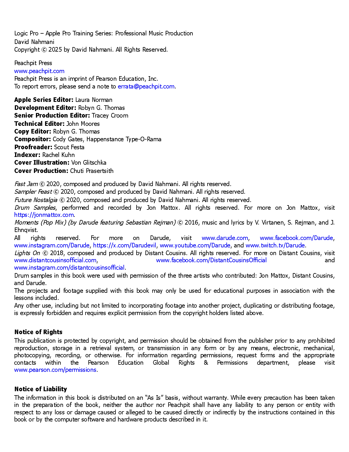 Unlock your music production potential with the definitive guide for Logic Pro 11.X, fully updated for the 2025/2026 academic year. Authored by the renowned David Nahmani, this official Apple Pro Training Series book provides a comprehensive, step-by-step approach to mastering professional audio production. From recording and editing to mixing and mastering, this guide is expertly designed to help you pass the Apple Certified Pro exam on your first try, eliminating the need for costly resits. Complete with downloadable lesson and media files, this resource is your key to becoming a Logic Pro expert.
