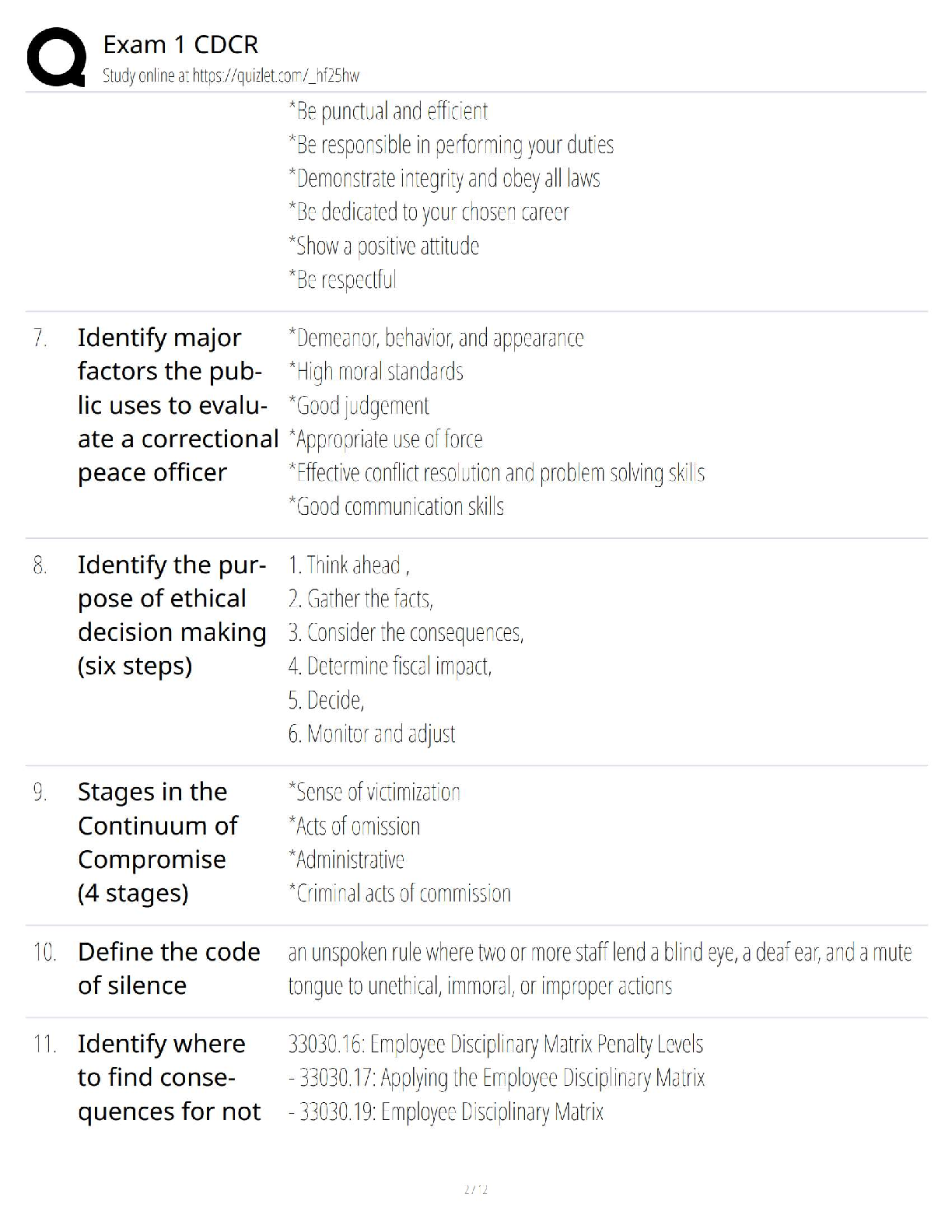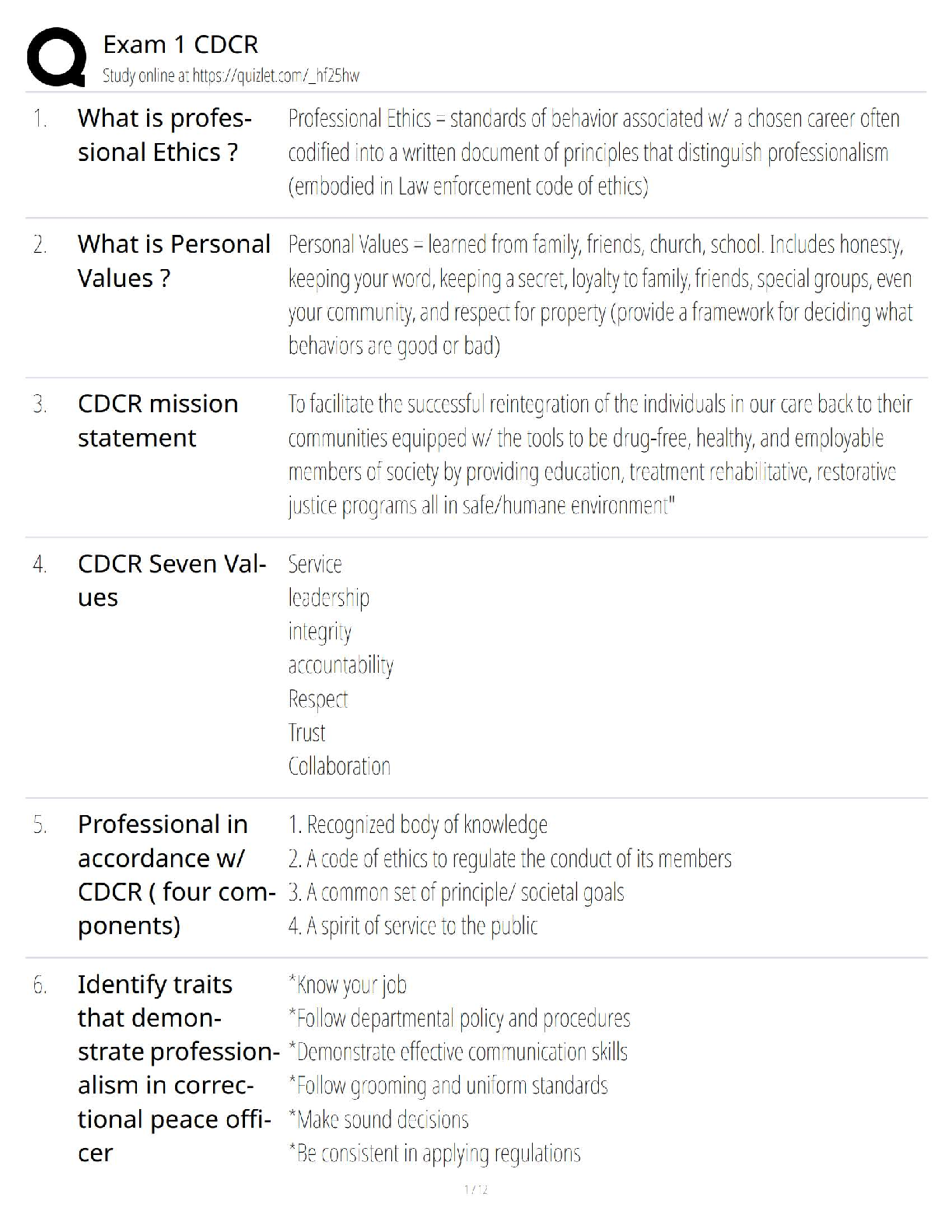 CDCR Exam 1: Professional Ethics & Values Study Guide 2025/2026 | Ace Your Correctional Officer Exam First Try