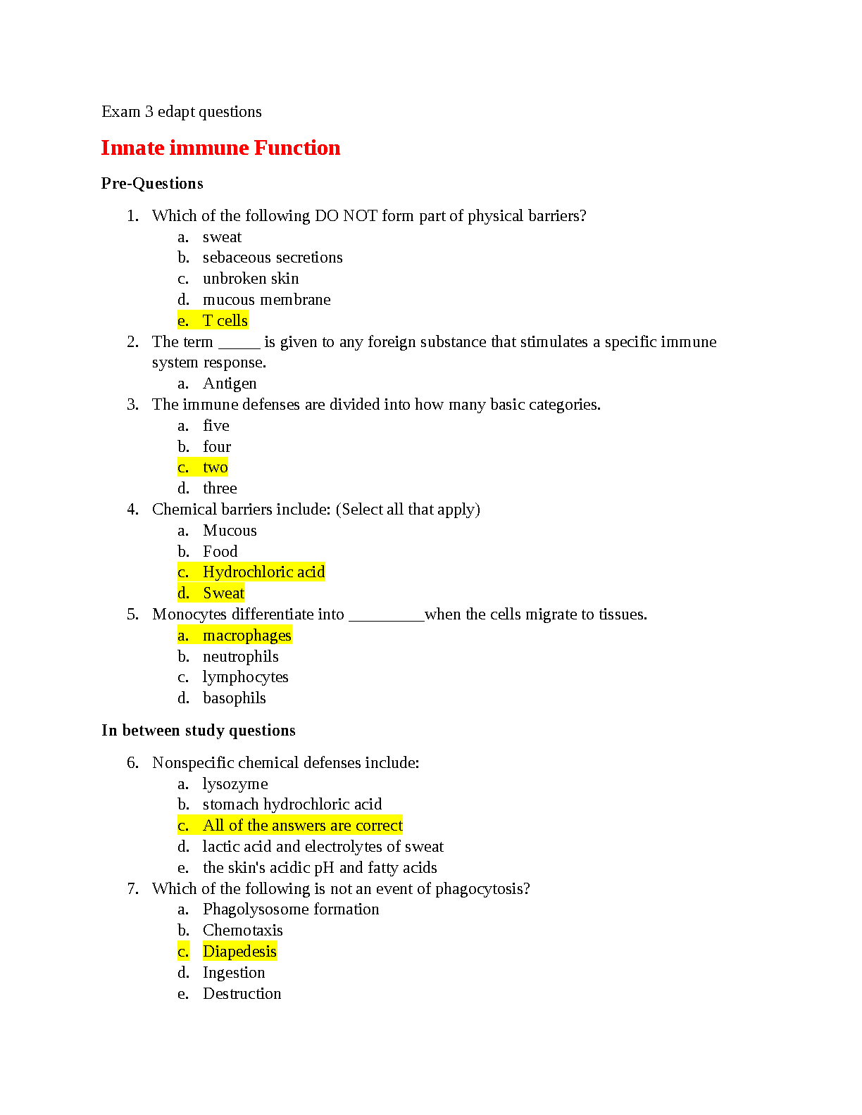 Master the complexities of the immune system and ace your upcoming exams with this targeted test bank focused on Innate Immune Function, from the 11th Edition of Medical-Surgical Nursing by Ignatavicius et al. This comprehensive resource features a collection of Edapt-style pre-questions and in-study questions, complete with verified answers, covering essential topics like physical and chemical barriers, the role of phagocytosis, and cellular defenses. This guide is expertly designed for the 2025/2026 academic year to help you deepen your understanding, practice for your test, and pass on your first attempt, avoiding costly and stressful resits.
