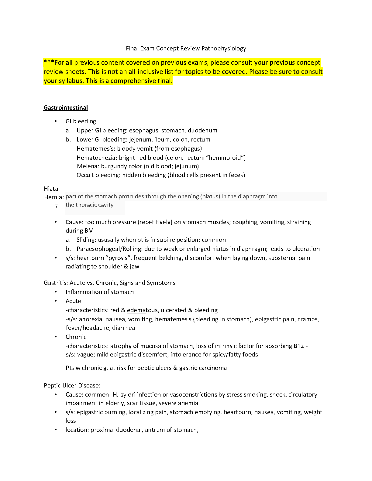 Struggling with Pathophysiology? This comprehensive final exam concept review is your ultimate study companion for the 2025/2026 academic year. Meticulously organized, this guide breaks down complex topics, like those in the Gastrointestinal system, into easy-to-understand notes covering causes, signs, and symptoms of major diseases. Designed to provide a clear and concise overview of all essential concepts, this resource helps you stop cramming and start understanding. Prepare efficiently, boost your confidence, and pass your final exam on the very first try, avoiding stressful resits. Perfect for nursing and health science students aiming for success.