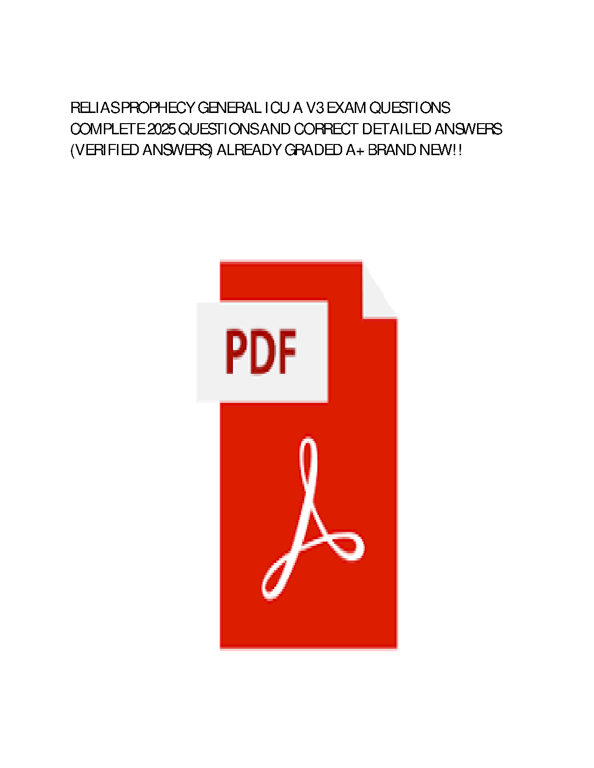 Relias Prophecy General ICU A V3 Exam Study Guide 2025/2026: Pass on Your First Attempt with Verified Questions & Answers