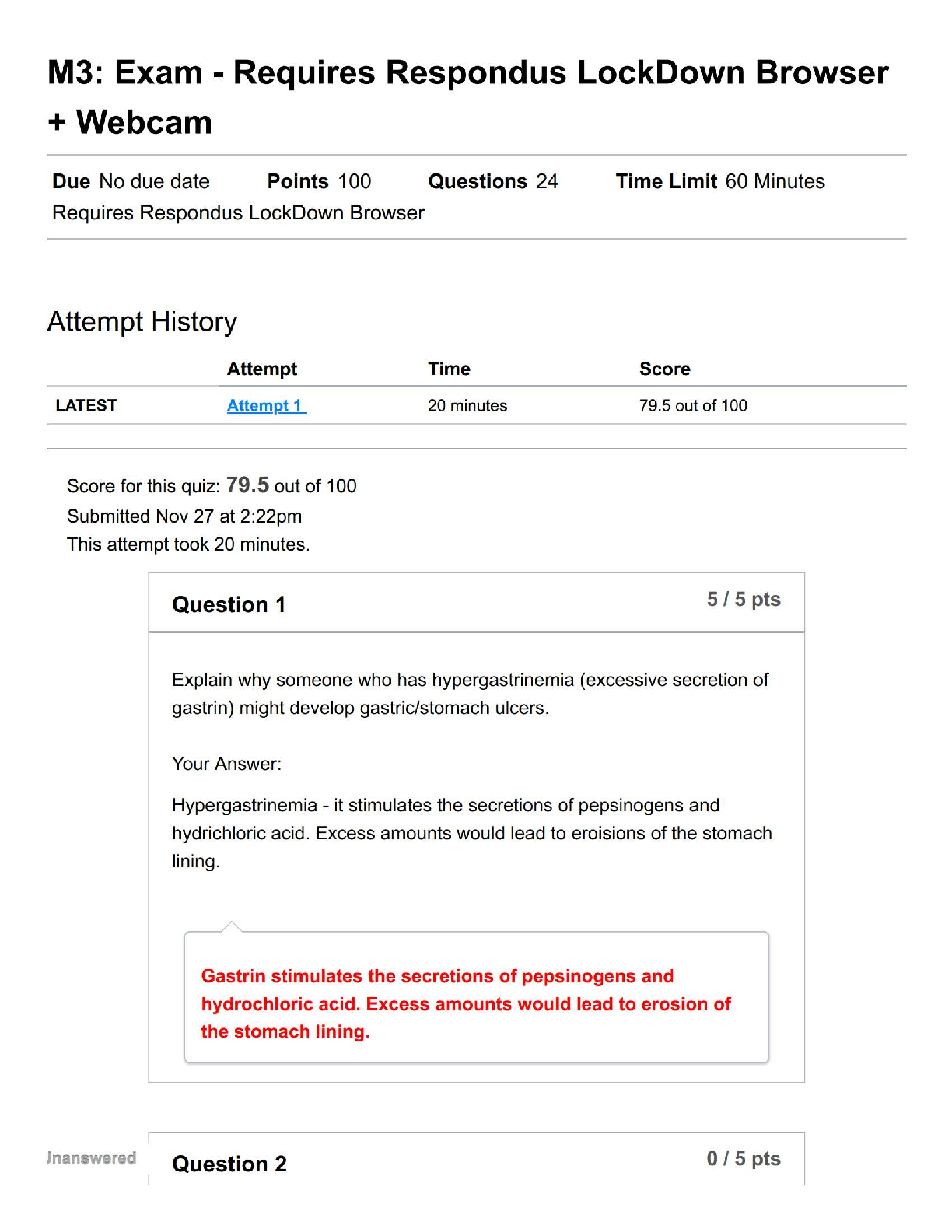 Ace your course with our latest M3 Exam Elaboration for the 2025/2026 academic year. This detailed guide features a complete set of questions and expertly verified answers from a recent exam (scored 79.5/100). It's the perfect tool to understand key concepts, such as the effects of hypergastrinemia, and confidently prepare for your test. Avoid resits and secure a top grade by studying with this proven resource, designed for students aiming to pass on their very first try.