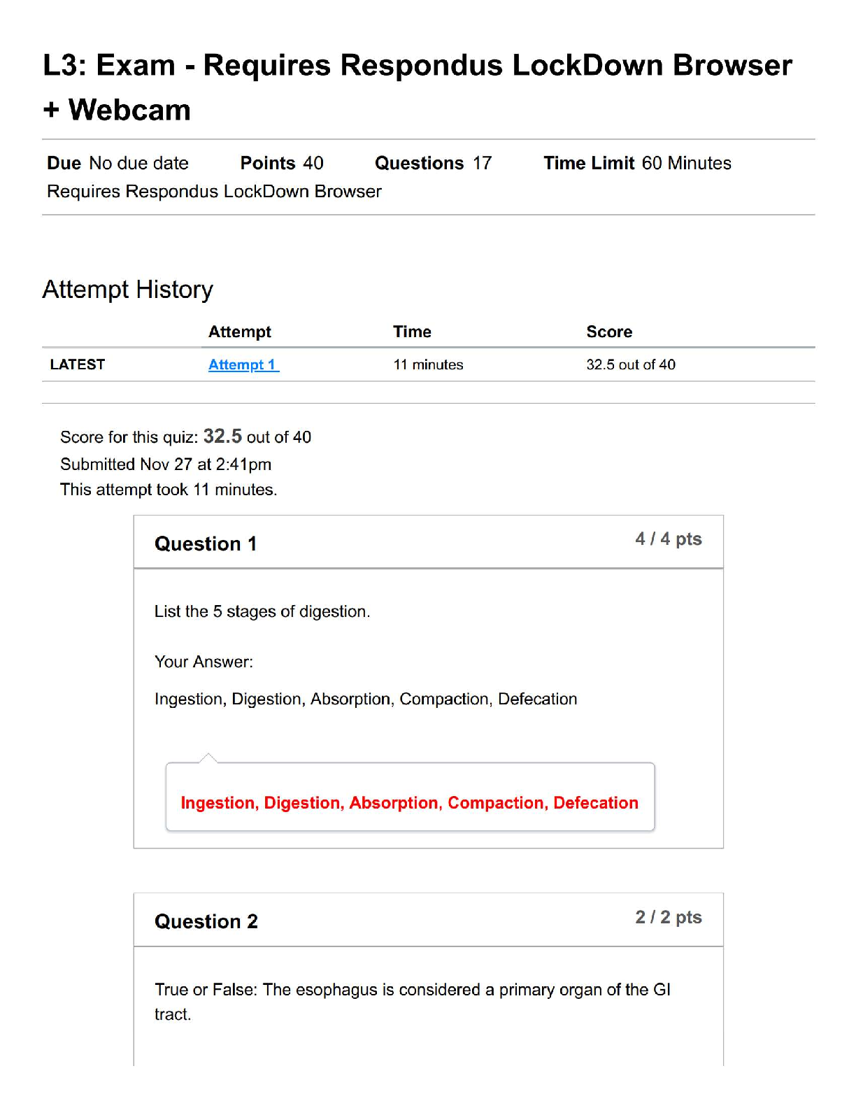 Unlock your potential and conquer your L3 Exam with this comprehensive study guide for the 2025/2026 academic year. This resource provides a detailed elaboration of the exam, focusing on the digestive system. Inside, you'll find the complete set of questions along with verified, correct answers that resulted in a high score of 32.5 out of 40. From the five stages of digestion to the primary organs of the GI tract, this guide covers key concepts you need to know. Stop worrying about resits and prepare to pass on your first attempt with this essential study tool.