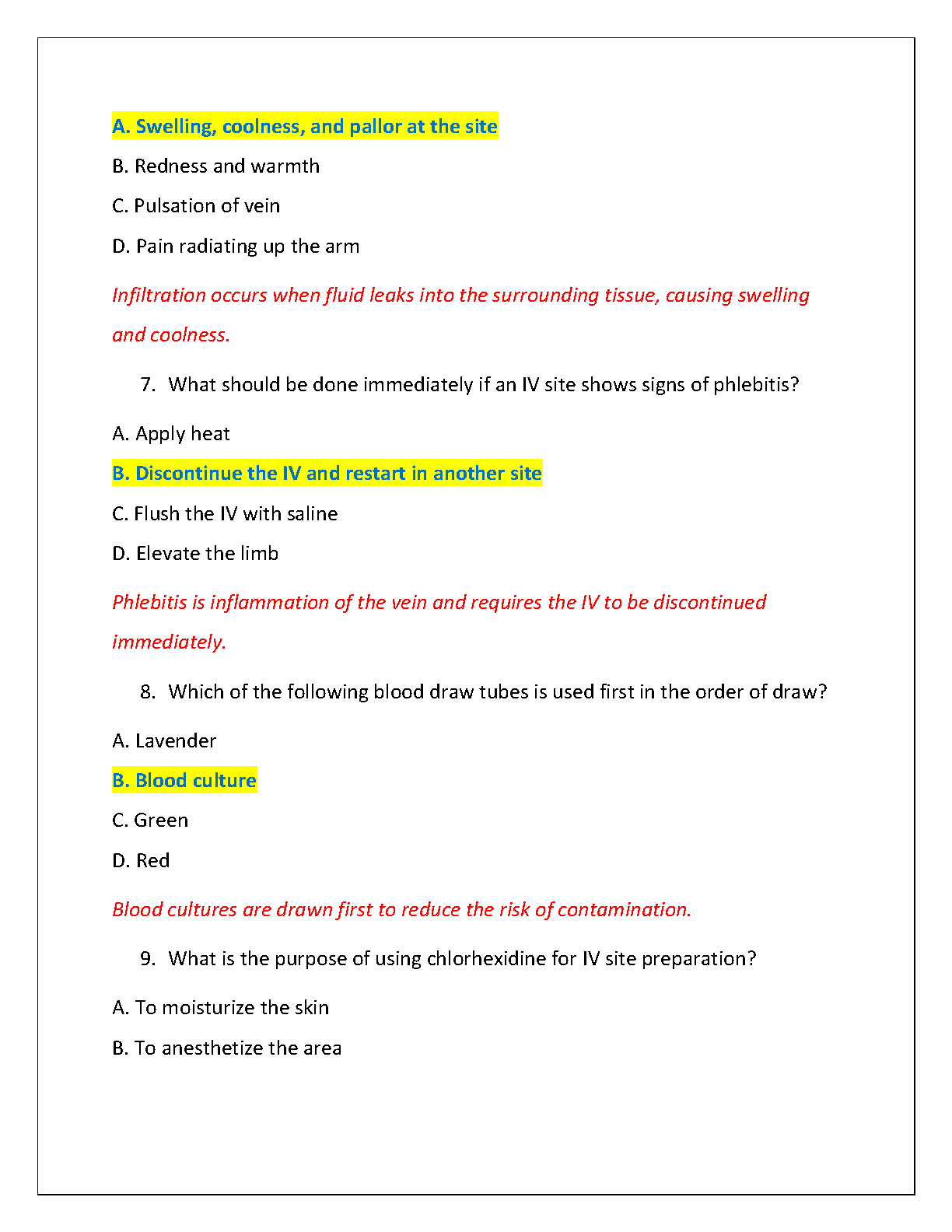 IV Therapy & Blood Withdrawal Certification Exam Test Bank 2025: Master the Exam with Verified Questions, Answers & Rationales