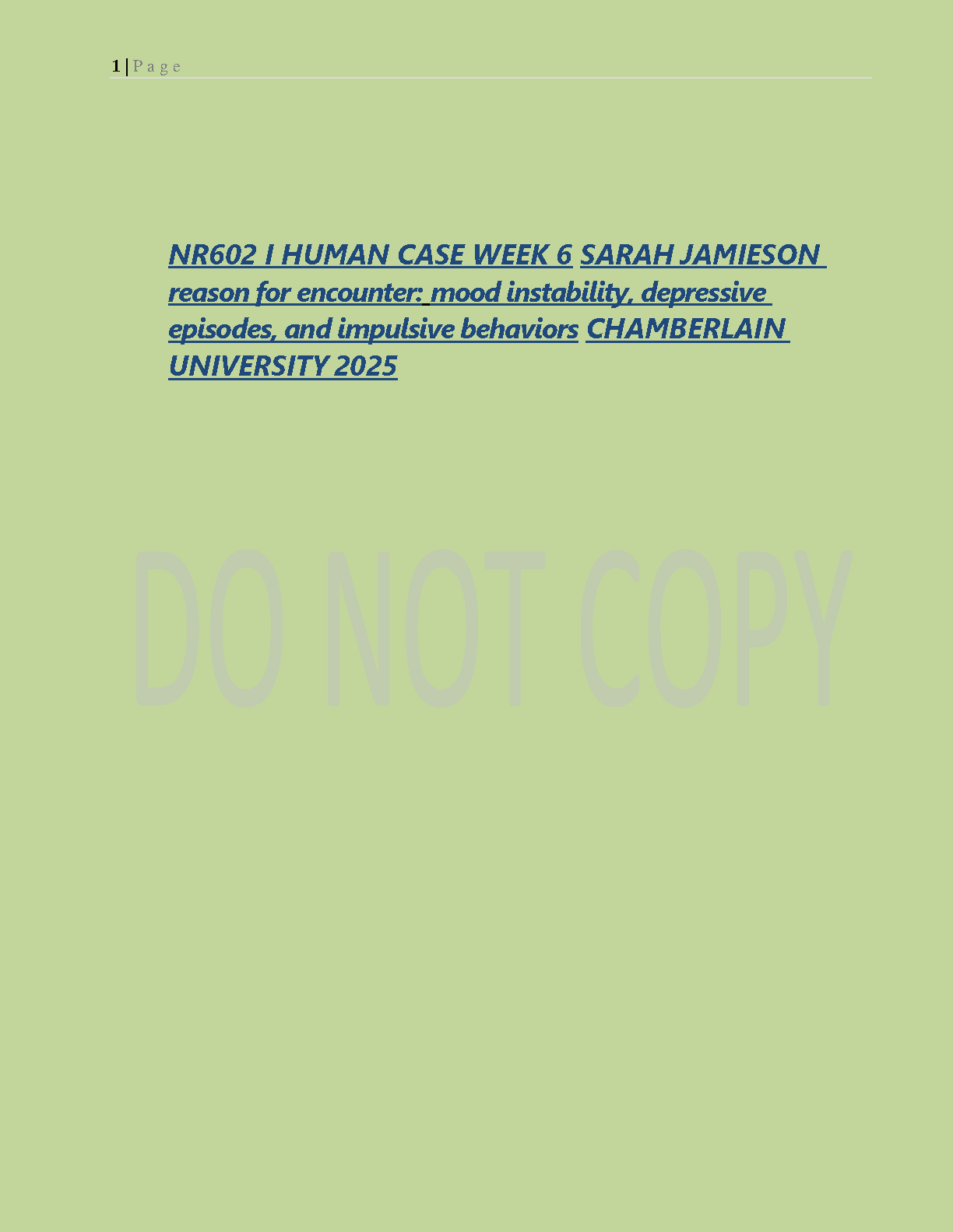 Excel in your NR602 course at Chamberlain University with this comprehensive iHuman case study for Week 6, focusing on the patient Sarah Jamieson. This newly released 2025/2026 guide delves into the complete patient encounter, covering key assessments for mood instability, depressive episodes, and impulsive behaviors. Our detailed walkthrough and expert insights are designed to help you master the iHuman simulation, ace your exams on the first try, and avoid costly resits. Get the essential preparation you need for success in your advanced nursing program.