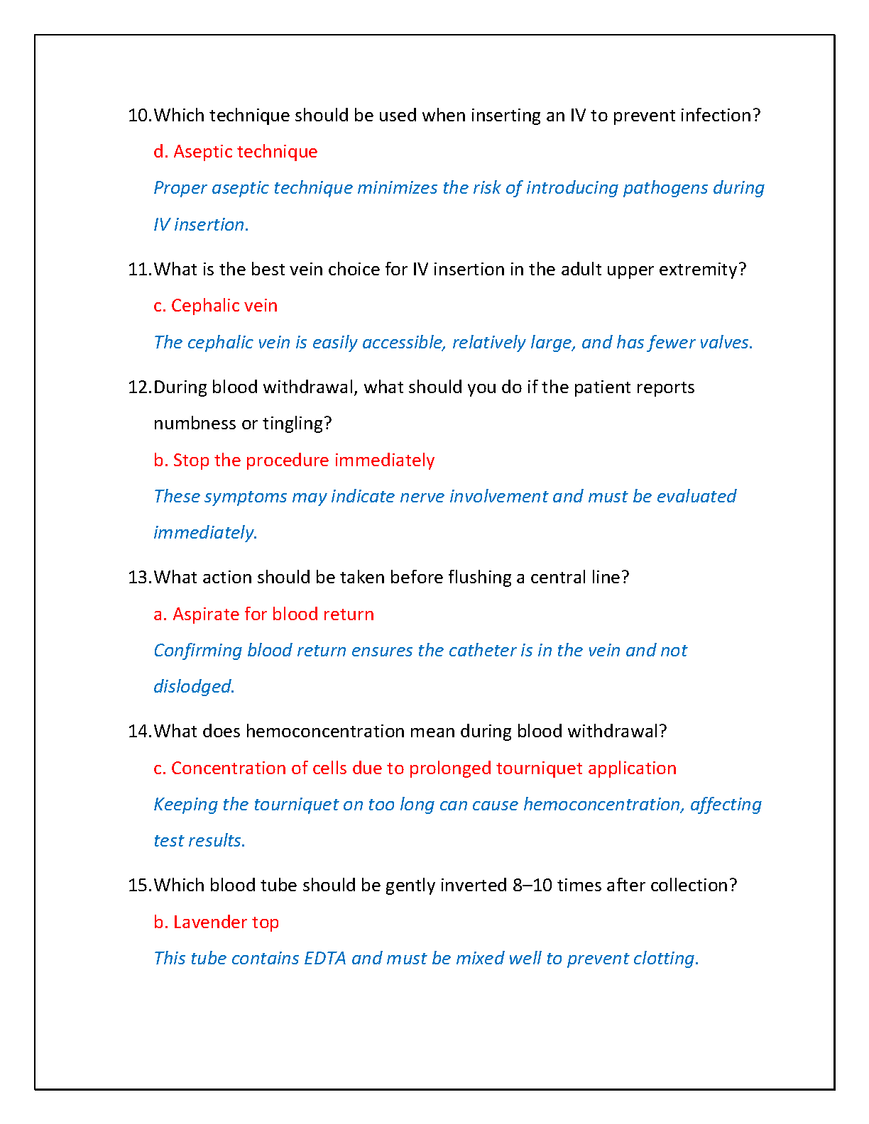 IV Therapy & Blood Withdrawal Certification Exam 2025: Complete Q&A Test Bank with Rationales