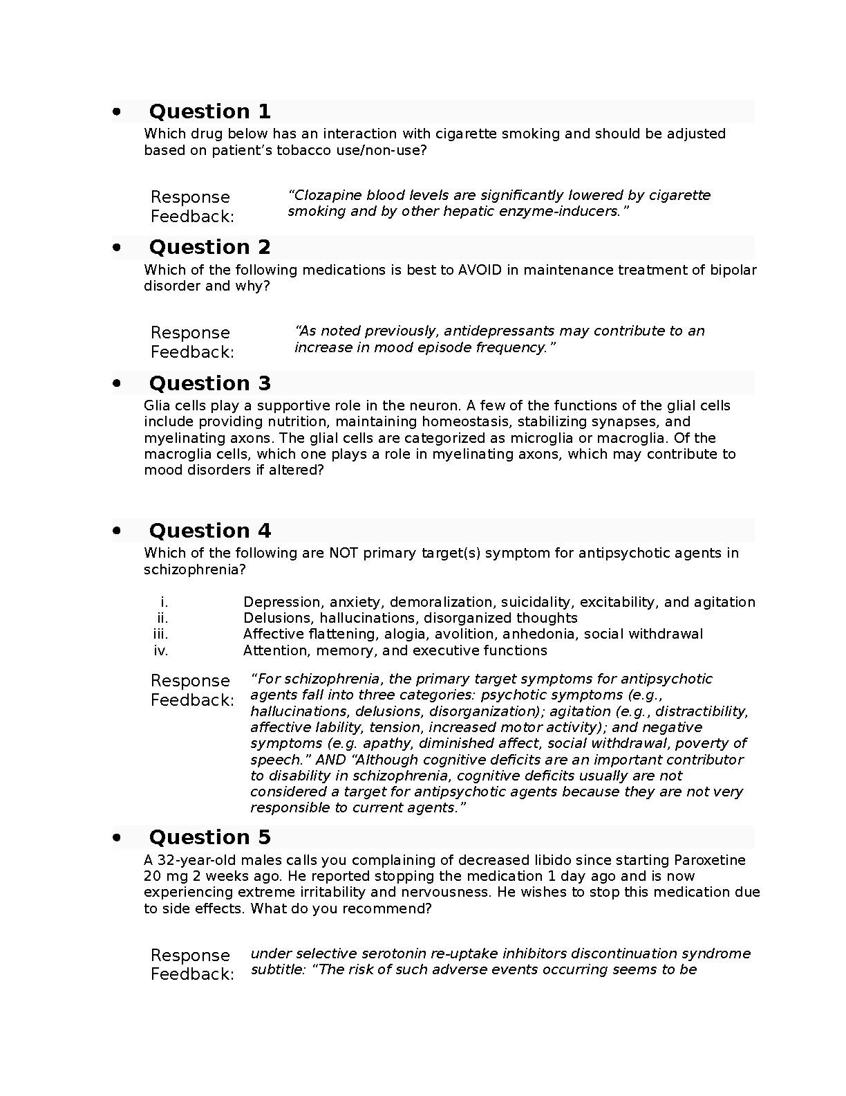 Master the complexities of psychopharmacology with the complete Test Bank for the 5th Edition of Stahl's Essential Psychopharmacology. This comprehensive resource provides hundreds of multiple-choice questions and detailed rationales, mirroring the format of your actual exams. Dive deep into crucial topics including drug interactions like clozapine and smoking, maintenance treatments for bipolar disorder, the neurobiology of schizophrenia, and management of SSRI discontinuation syndrome. Designed to enhance your understanding and boost your confidence, this test bank is the ultimate study tool for nursing, medical, and pharmacy students aiming to ace their exams and build a solid foundation in clinical psychopharmacology.