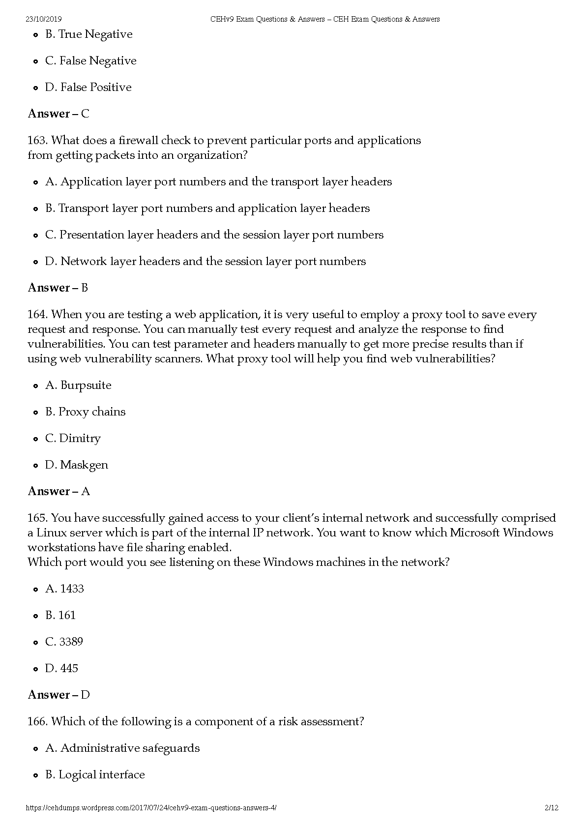 CEH v9 Test Bank: EC-Council Certified Ethical Hacker Exam Questions and Answers