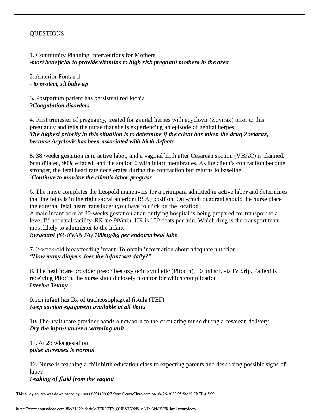 Unlock your potential and ace the HESI Maternity exam on your first try with our definitive 2025/2026 test bank. This comprehensive study guide is packed with a wide range of practice questions and detailed, expert-verified answers covering all essential topics in maternity nursing. From antepartum and intrapartum care to postpartum complications and newborn assessment, this resource simulates the real exam environment. Master complex scenarios involving high-risk pregnancies, fetal monitoring, and pharmacological interventions to build your confidence and ensure you're fully prepared. Stop cramming and start studying smart to pass your HESI exam with flying colors and avoid costly resits!