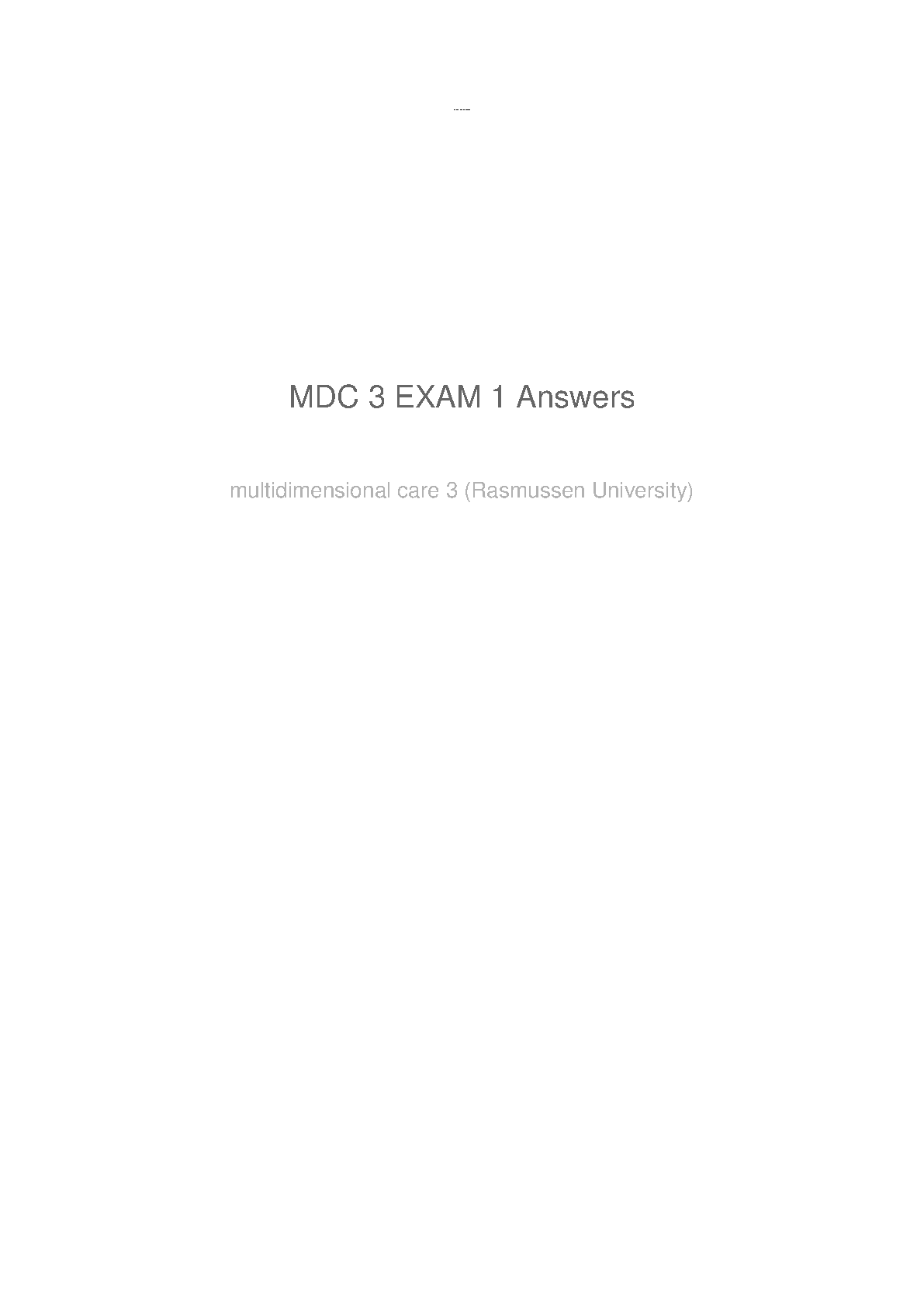 Unlock academic success in your Multidimensional Care 3 course at Rasmussen University with our premier study resource for Exam 1. This meticulously compiled guide contains verified answers, tailored specifically for the 2025/2026 curriculum. Designed to boost your confidence and understanding, this material is your key to passing MDC 3 Exam 1 on your very first attempt, helping you avoid costly and stressful resits. Get the edge you need to excel!