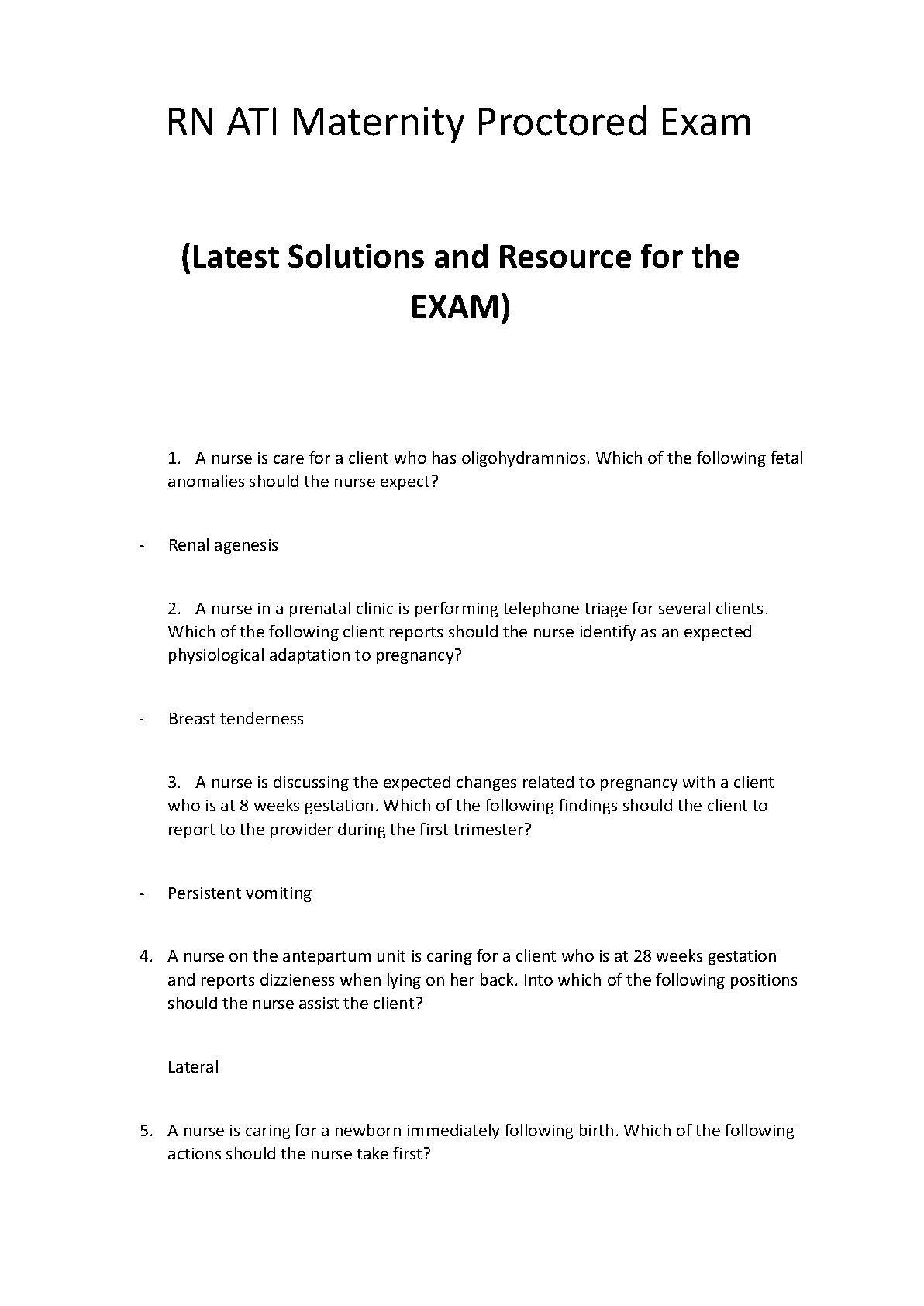 Prepare to ace your nursing exams with our most up-to-date resource for the RN ATI Maternity Proctored Exam, tailored for the 2024-2025 academic year. This comprehensive test bank is meticulously designed to help you master key concepts in maternity nursing. It features a vast collection of exam-style questions paired with detailed, expert-verified answers and rationales. This essential study guide is your key to understanding complex topics, boosting your confidence, and passing the ATI Maternity Proctored Exam on your very first try. Avoid resits and achieve your academic goals with this ultimate preparation tool.