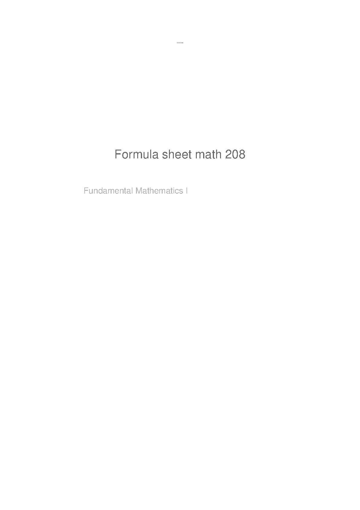 Unlock your full potential in Fundamental Mathematics I with our expertly compiled Math 208 formula sheet, fully updated for the 2025/2026 academic year. This essential study guide consolidates all the critical formulas, theorems, and concepts you need into one easy-to-use resource. Designed to streamline your study process and build confidence, this guide is your key to mastering the material and passing your exams with flying colors on the very first attempt. Say goodbye to exam stress and costly resits—get the ultimate tool for academic success in Math 208 today!